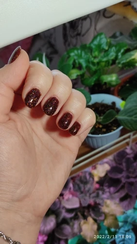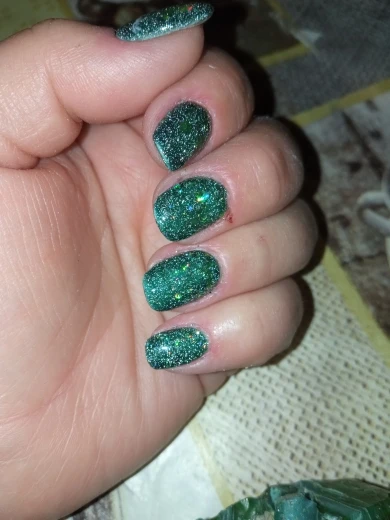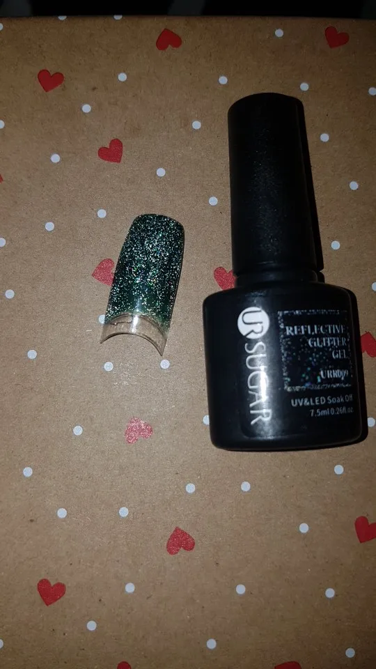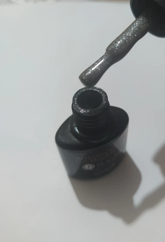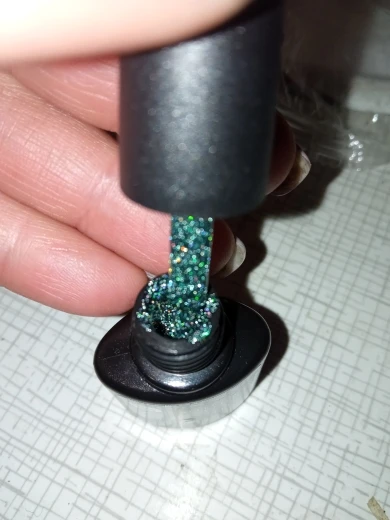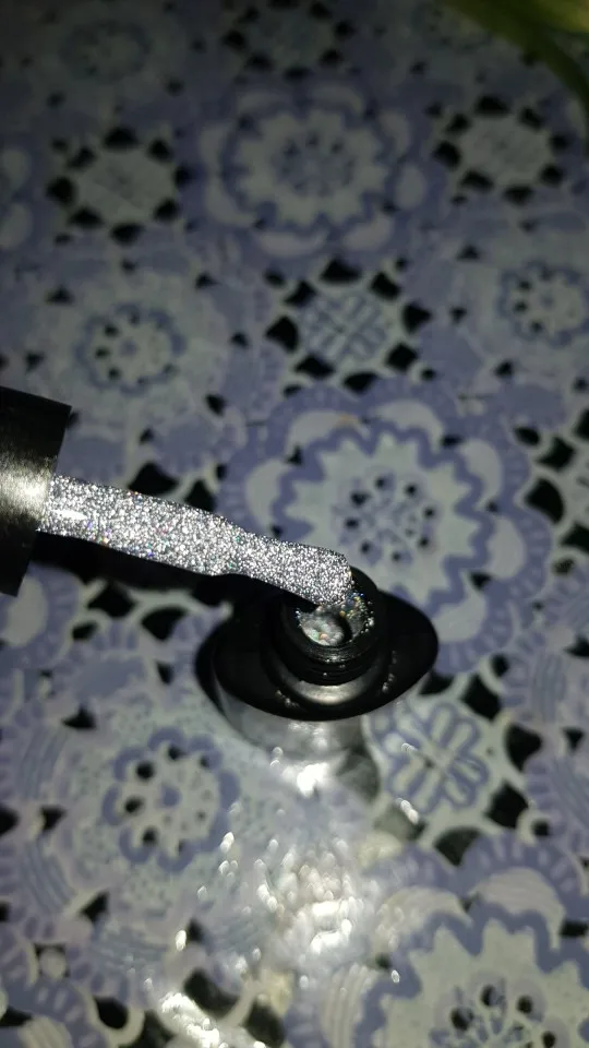 Не имеет блестящего эффекта, как на фото. Блестки хорошие, но нет темного блестящего эффекта ..