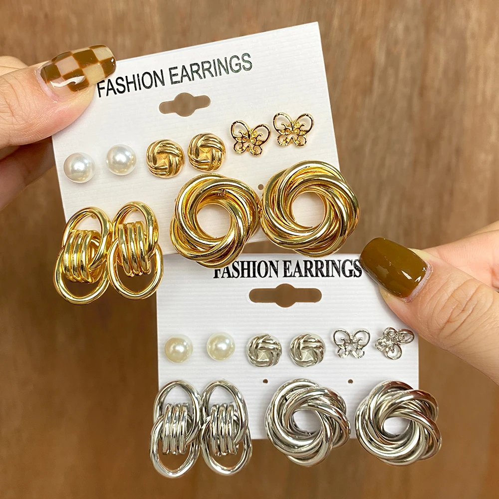 EN винтажные геометрические золотые металлические Искусственные серьги-подвески в стиле панк с жемчугом 2021 трендовый набор серег ювелирные изделия