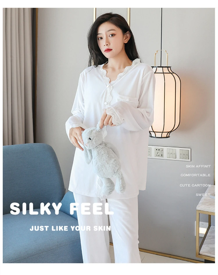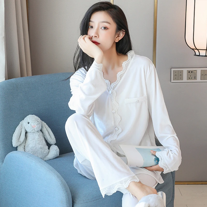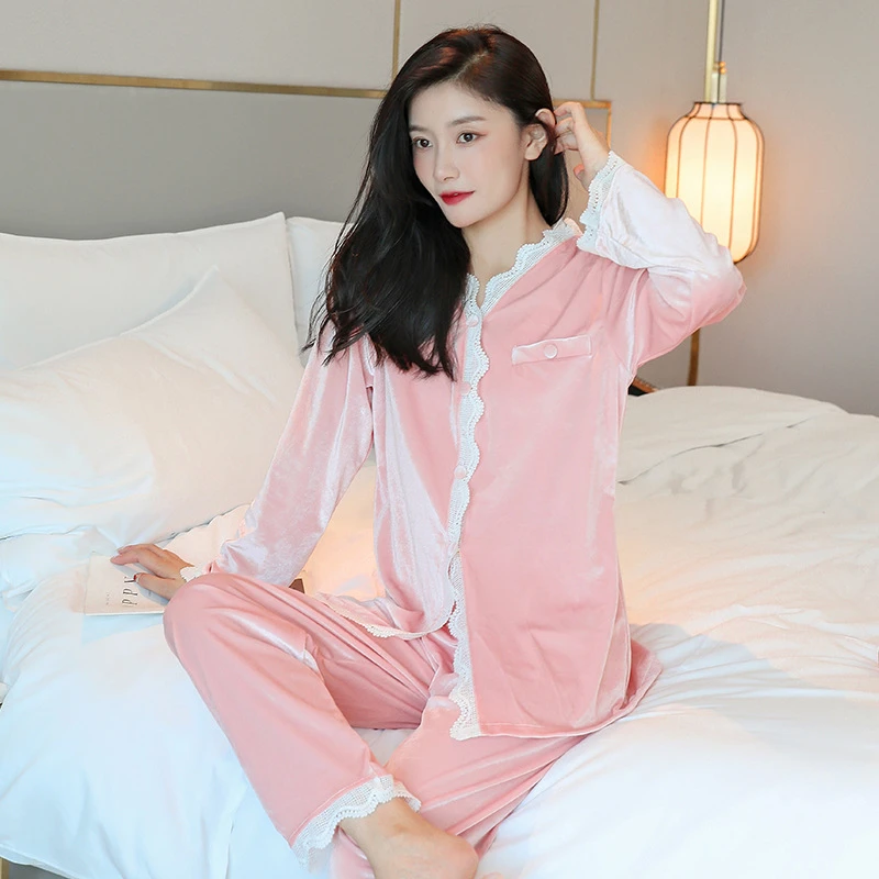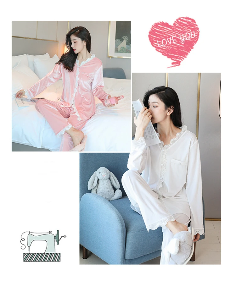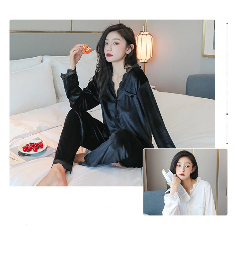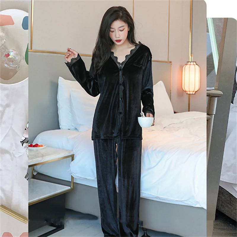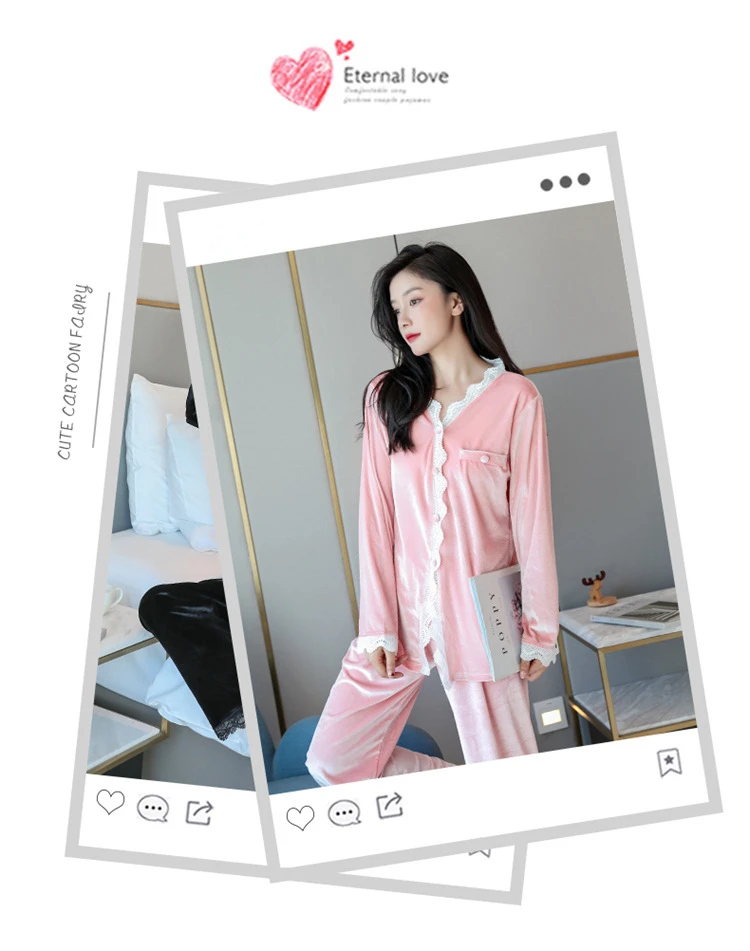 QSROCIO женский пижамный комплект зимняя 2 шт. бархатная одежда для сна Повседневная простая Домашняя одежда кружевная ночная рубашка модная Пижама для женщин