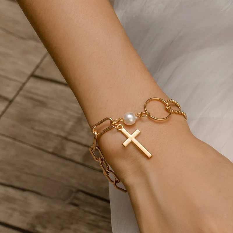Женский браслет с искусственным жемчугом, в готическом стиле, с узе...