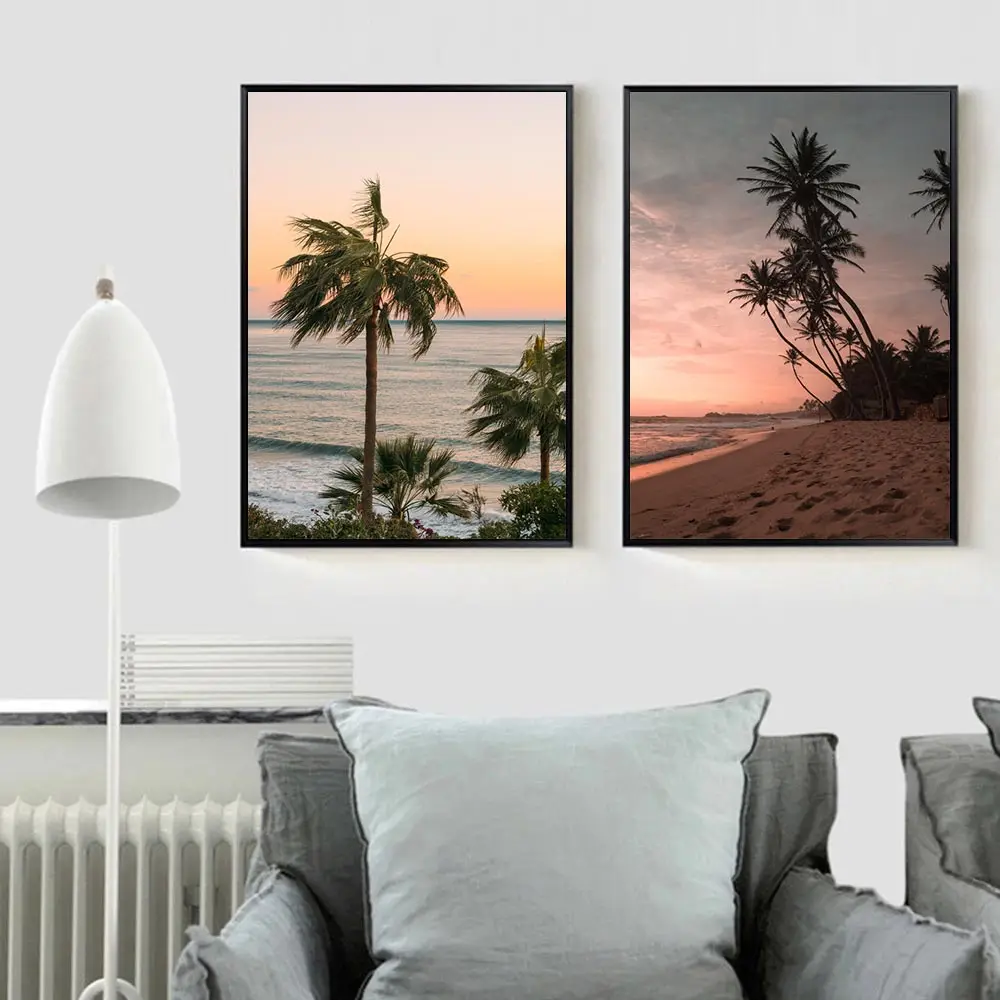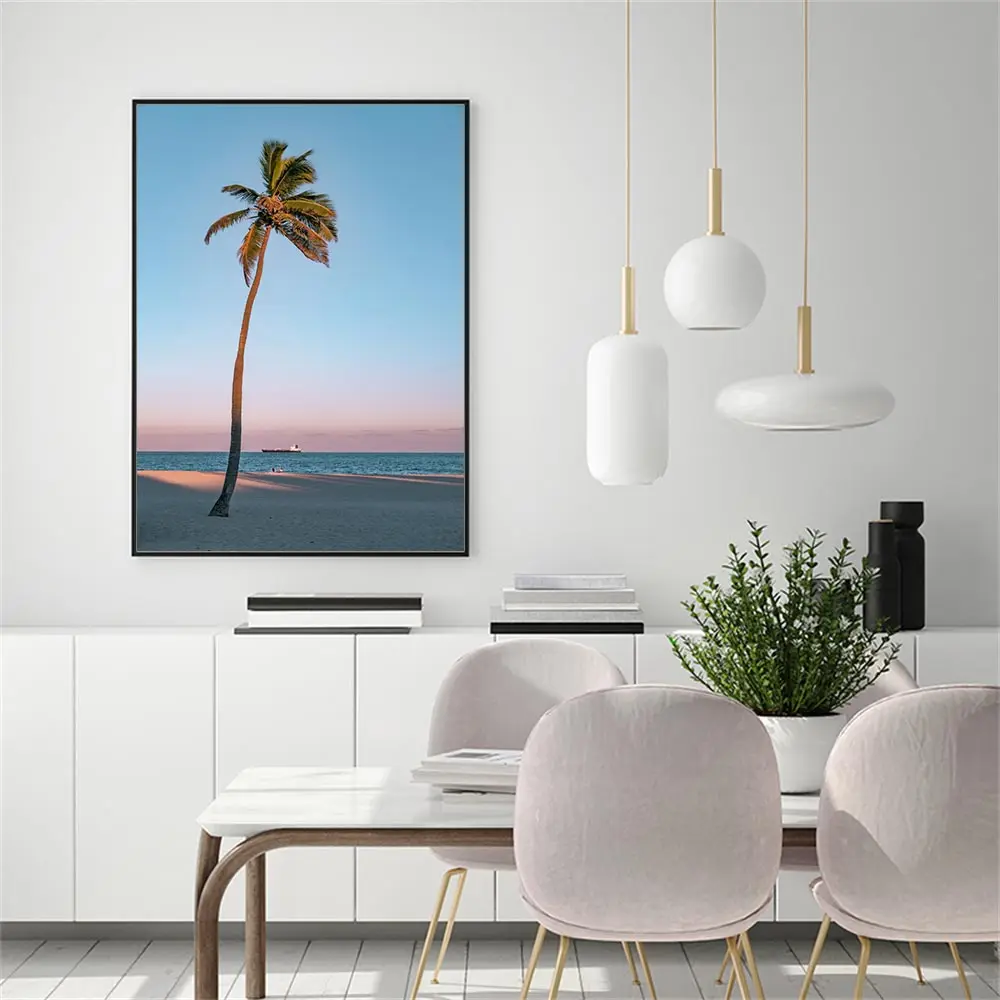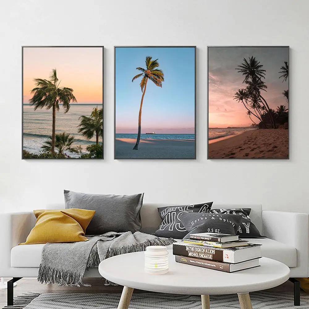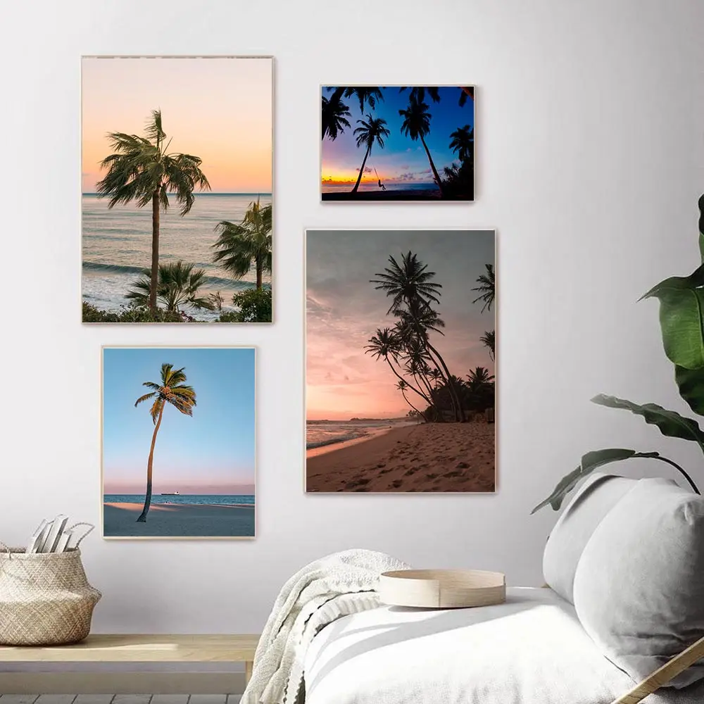 Скандинавский настенный плакат с кокосовым деревом, Пляжная Художественная печать, закат, светящаяся Картина на холсте, пейзаж, картины, Современная гостиная, домашний декор
