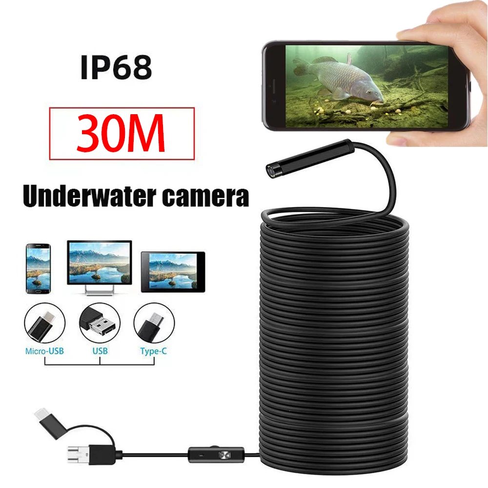 Эндоскоп 30 м HD IP67 эхолот 8 мм эндоскоп Micro USB Type-C труба для бороскопа видео инспекционная камера для телефона Android ПК
