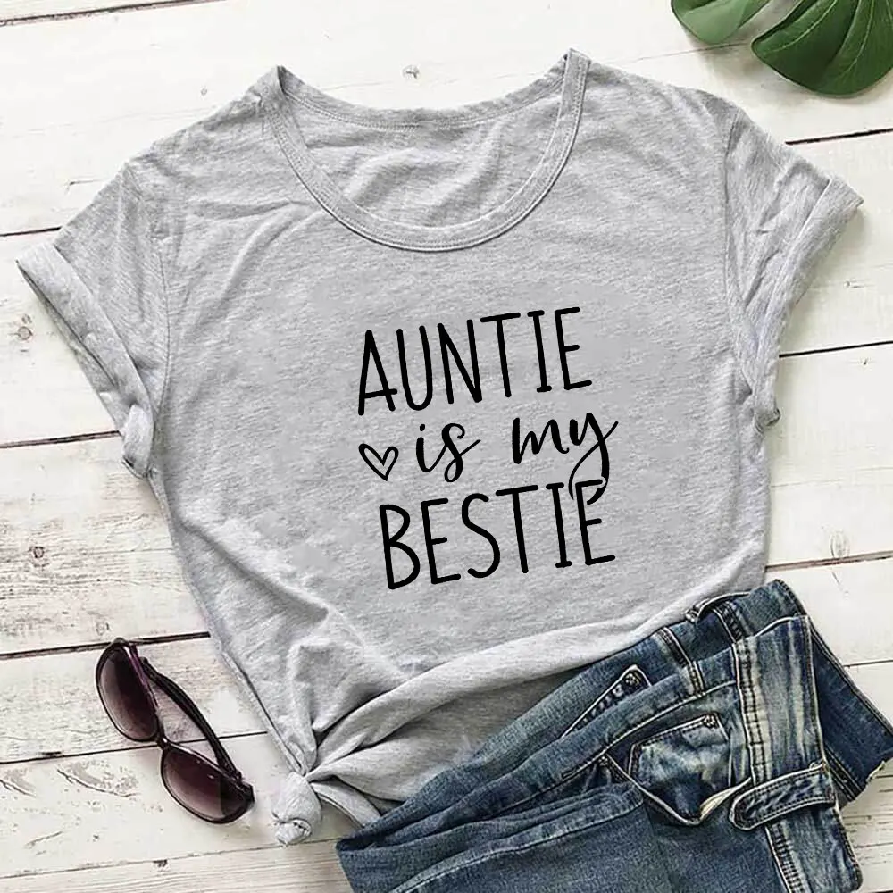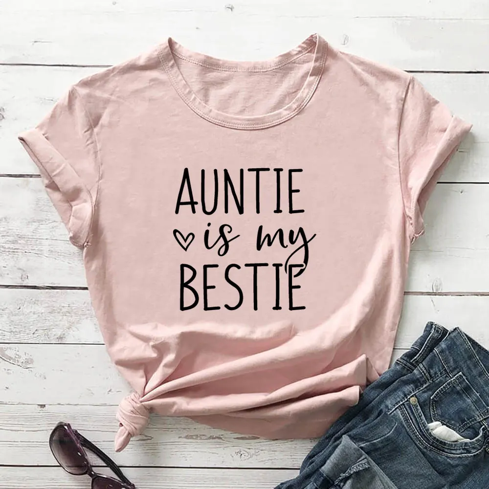 Женская футболка из 100% хлопка с принтом Auntie Is My Bestie, Новое поступление, забавный летний Повседневный Топ с коротким рукавом, футболка Лучшая тетя, Подарок Для Тети