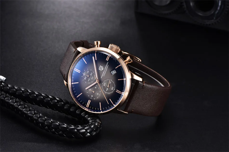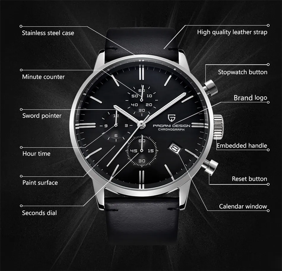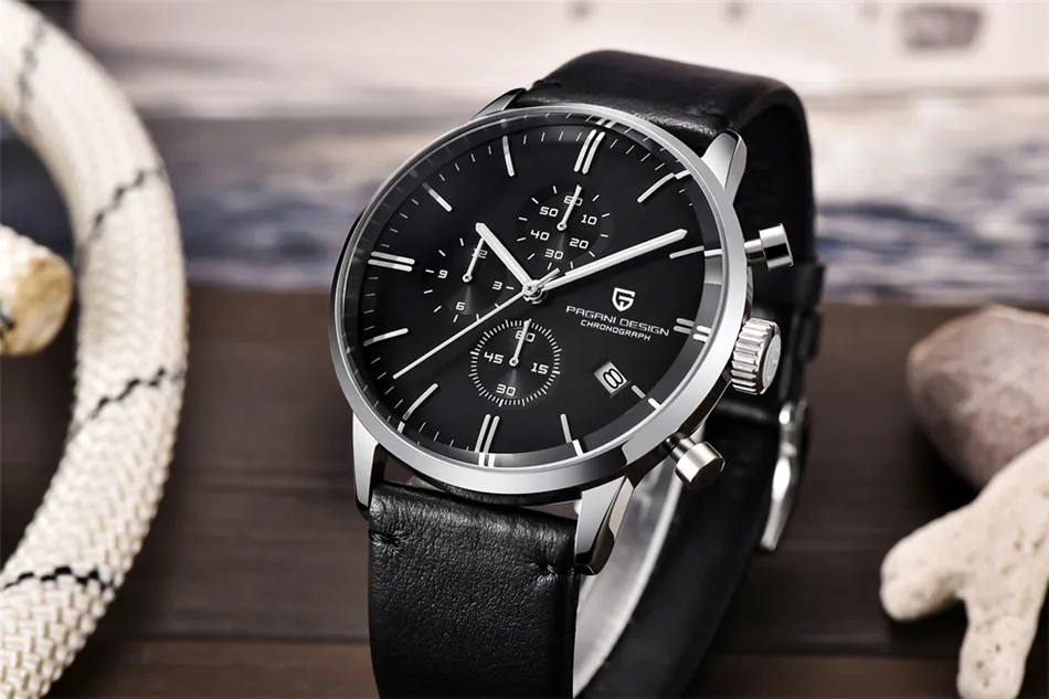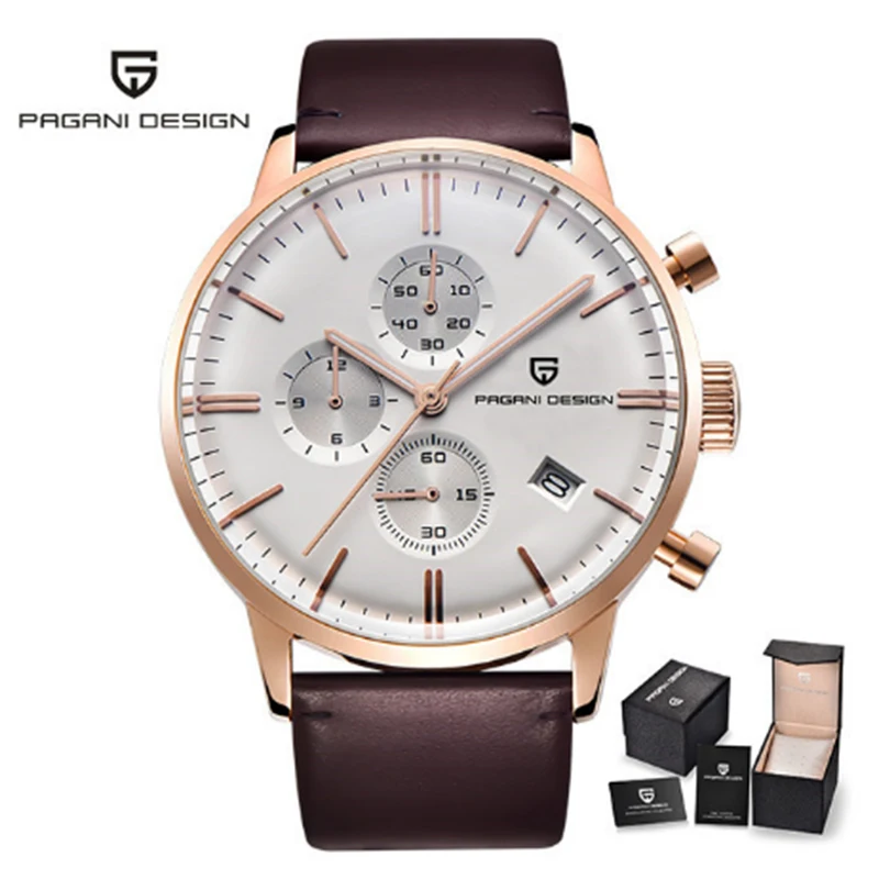 PAGANI Дизайн 2022 новые спортивные военные кварцевые мужские часы с хронографом и кожаным ремешком из нержавеющей стали с автоматической датой
