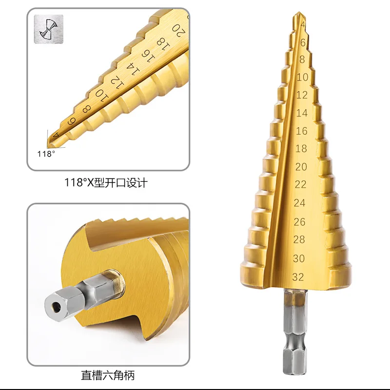 Ступенчатое сверло из быстрорежущей стали, металлические насадки с прямым желобом и титановым покрытием, ручной инструмент, электроинструменты, инструменты для деревообработки, 3-12 мм, 4-12 мм, 4-32 мм