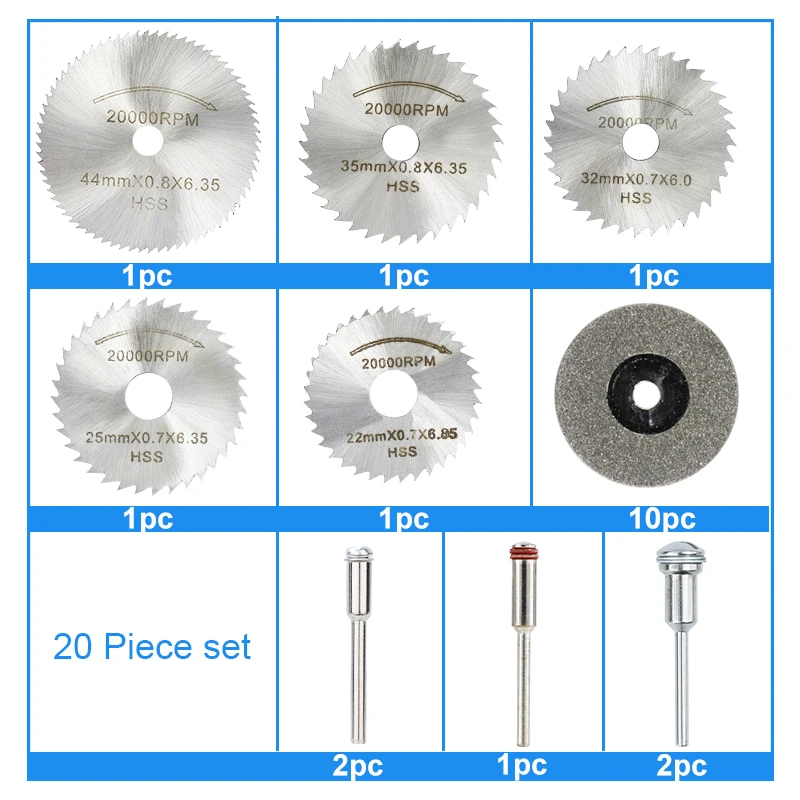 Мини-пила XCAN 20 шт. из быстрорежущей стали, алмазный режущий диск с оправкой для вращающихся инструментов Dremel, режущий инструмент для дерева и металла
