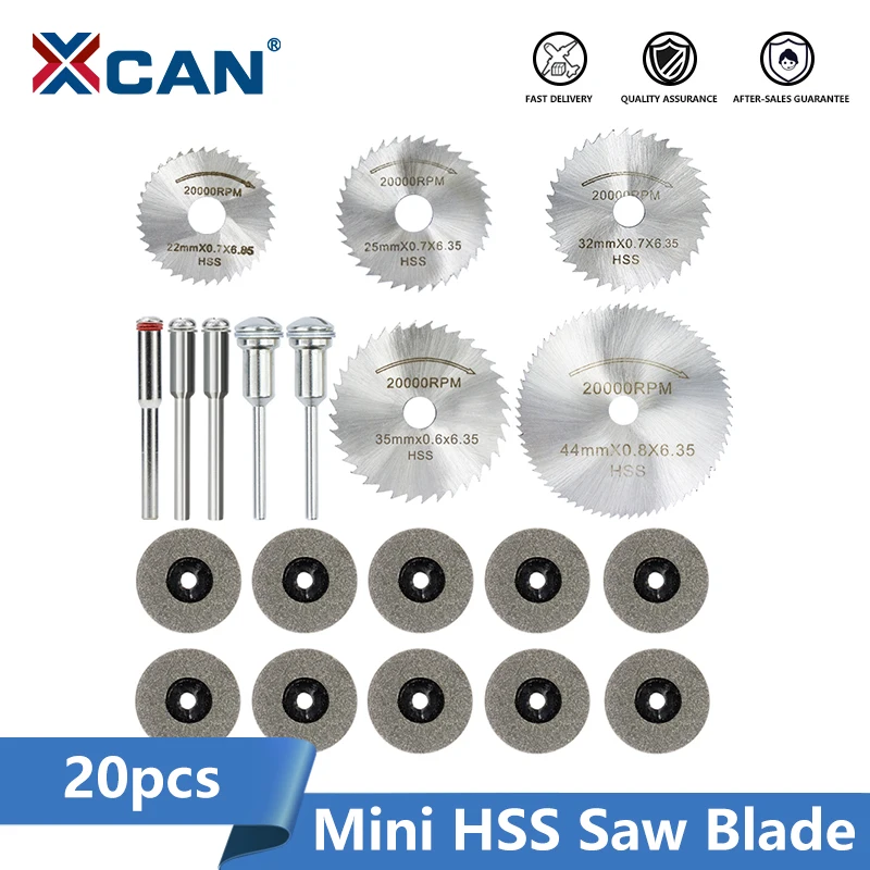 XCAN мини пильный диск 20 шт. HSS пильный диск алмазный режущий диск с оправкой для вращающихся инструментов Dremel Режущий инструмент для дерева и металла