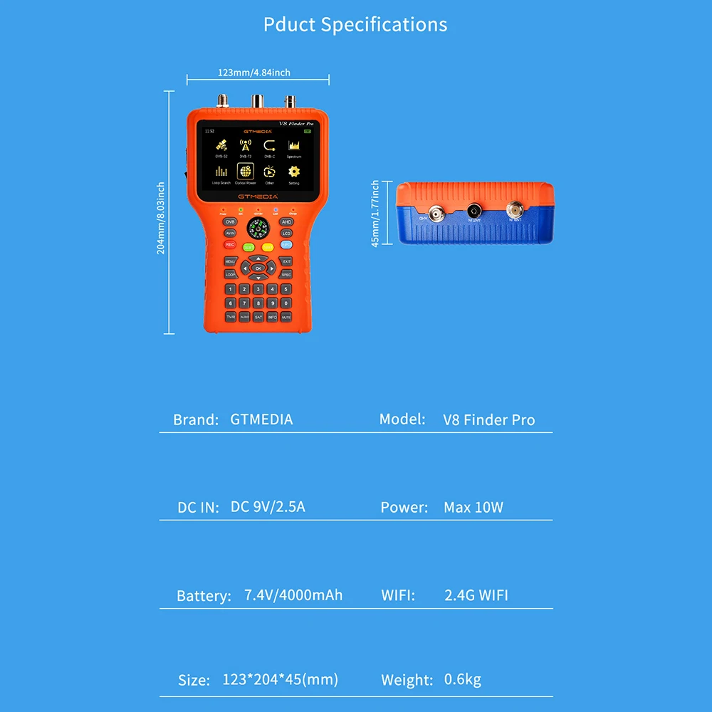 V8 Finder Pro Nieuwe Satelliet Signaal Finder DVB-S2X/S2/S/T2/T/C/ATSC-C H.265 Usb Wifi 2,4G Auto Bereken Hoek Van Az el
