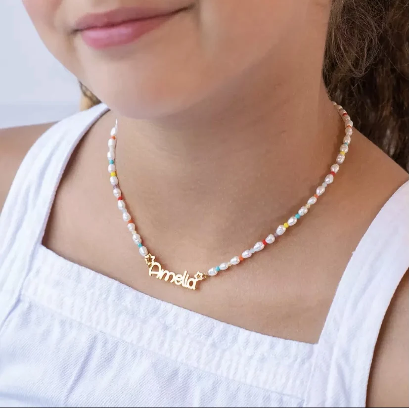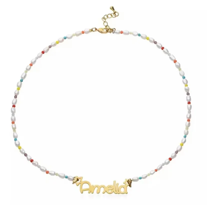 Индивидуальное ожерелье из бисера с именем, персонализированная жем...