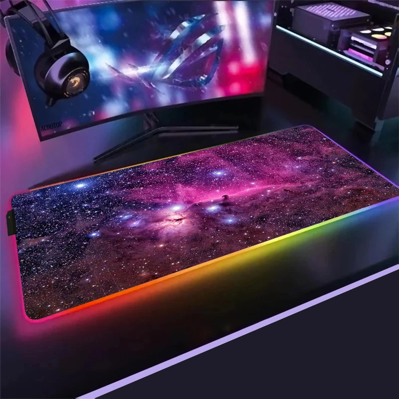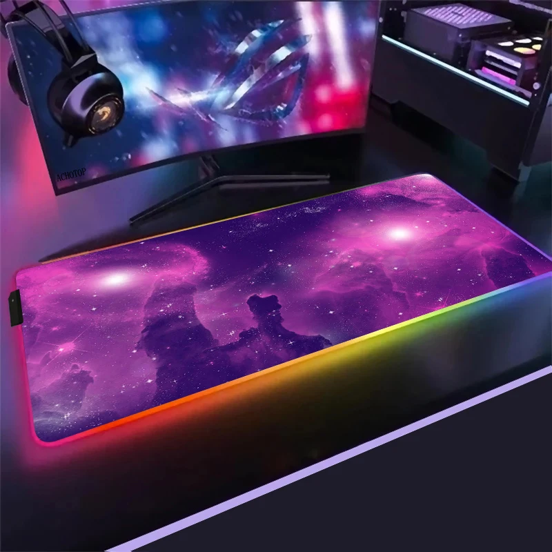 Цветной светящийся RGB игровой коврик для мыши, фиолетовый облако, космос, настольные компьютерные компьютеры, ноутбуки для CSGO, Dota, светодиодный ПК, геймерский коврик для мыши