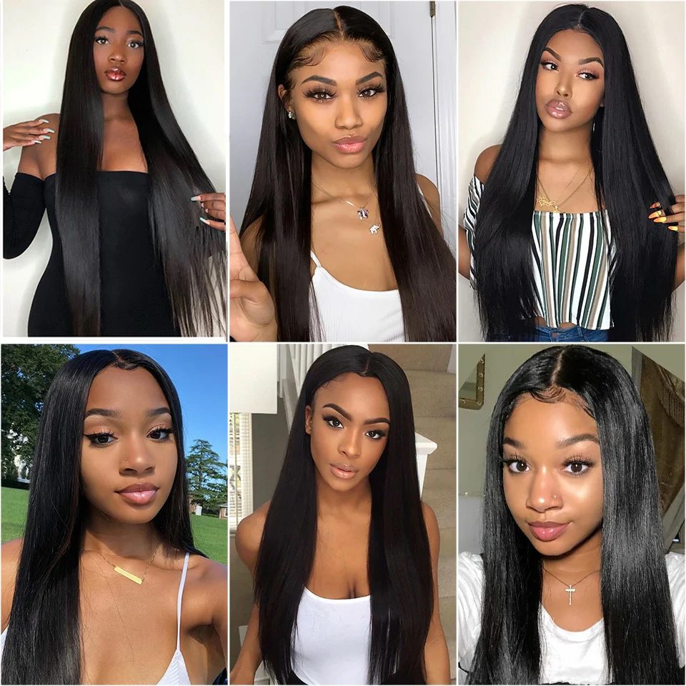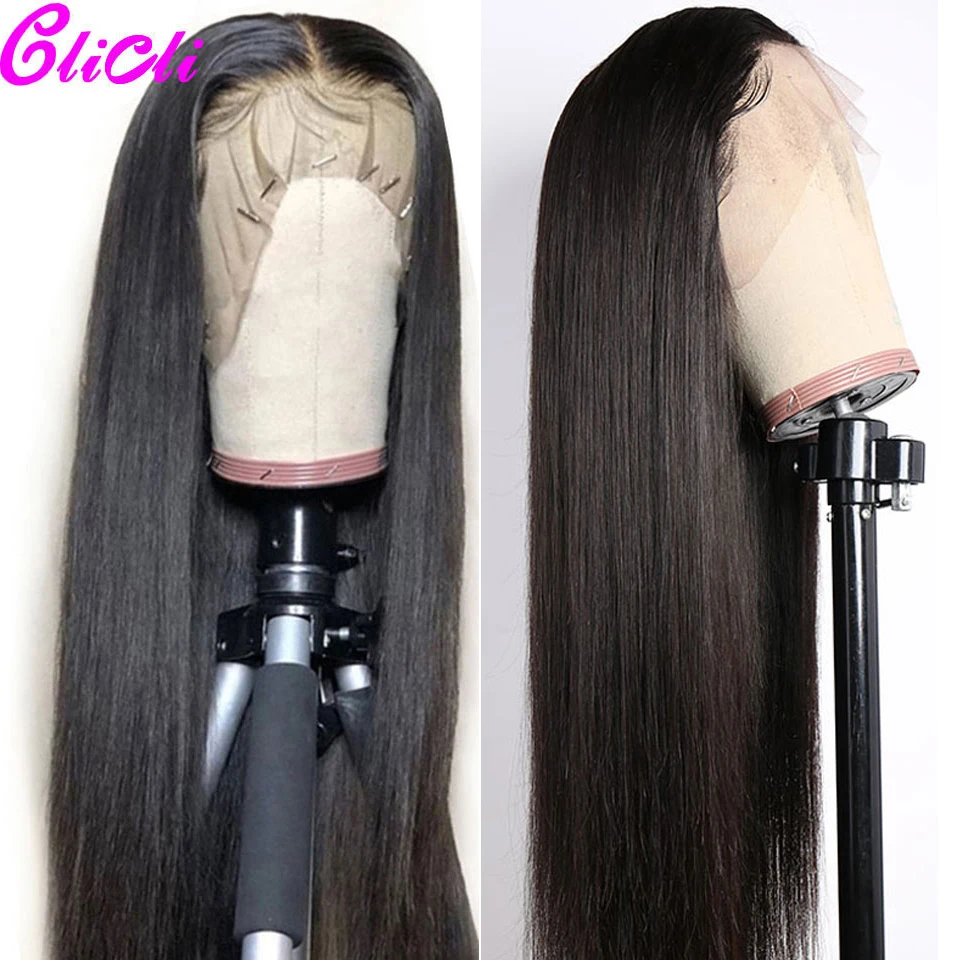 Парик бразильский прямой 13X 4 из человеческих волос на сетке спереди, парик прозрачный на сетке спереди, предварительно выщипанный, прямой парик на сетке 180%