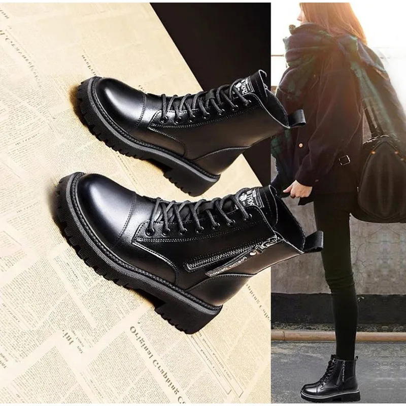 Женские короткие ботинки, модные женские ботильоны на молнии, кожаная женская обувь на платформе и толстом каблуке, Botas Mujer 2022