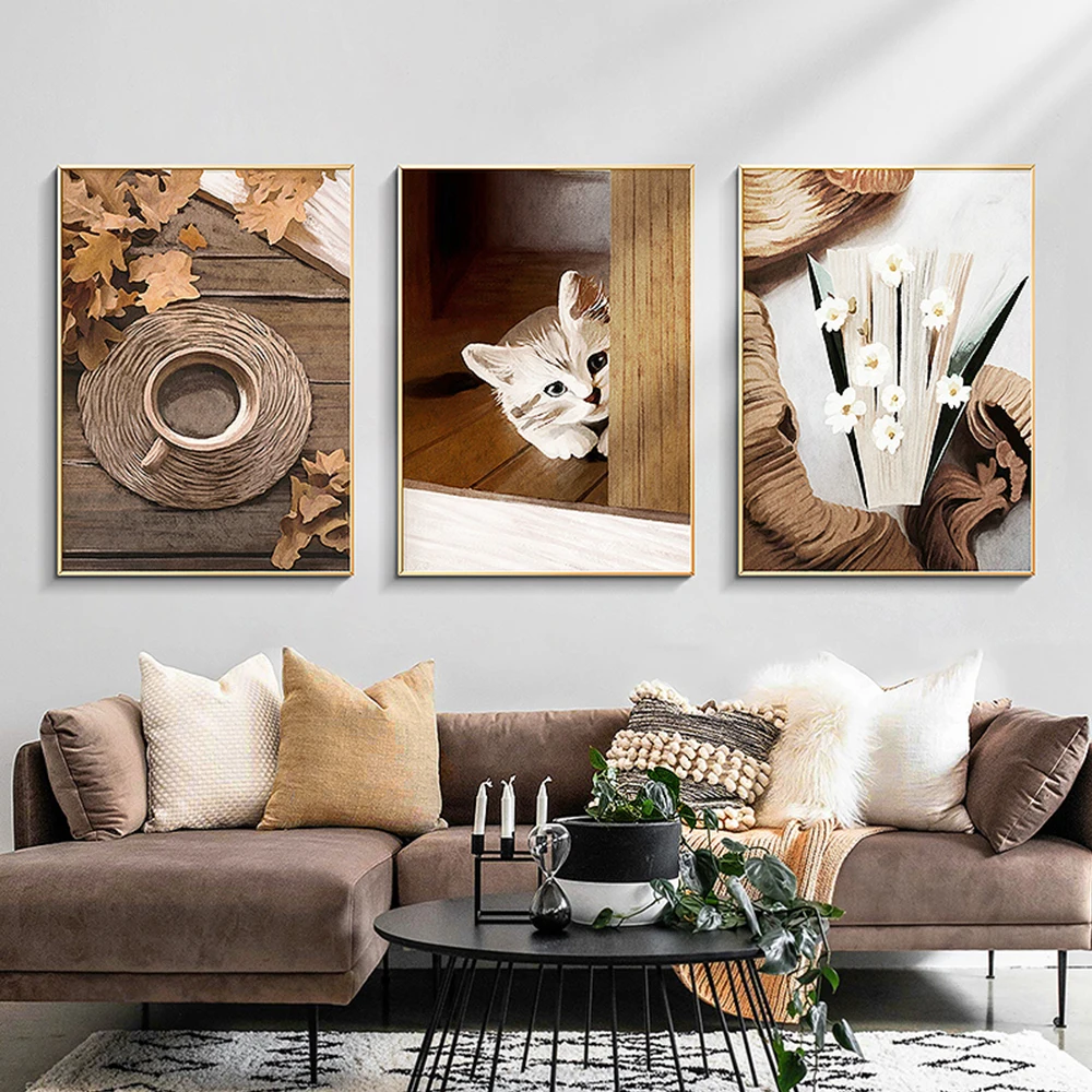 Современный настенный плакат с изображением натюрморта желтого кота, холст с принтом теплого солнечного света, абстрактные скандинавские плакаты и принты, домашний декор