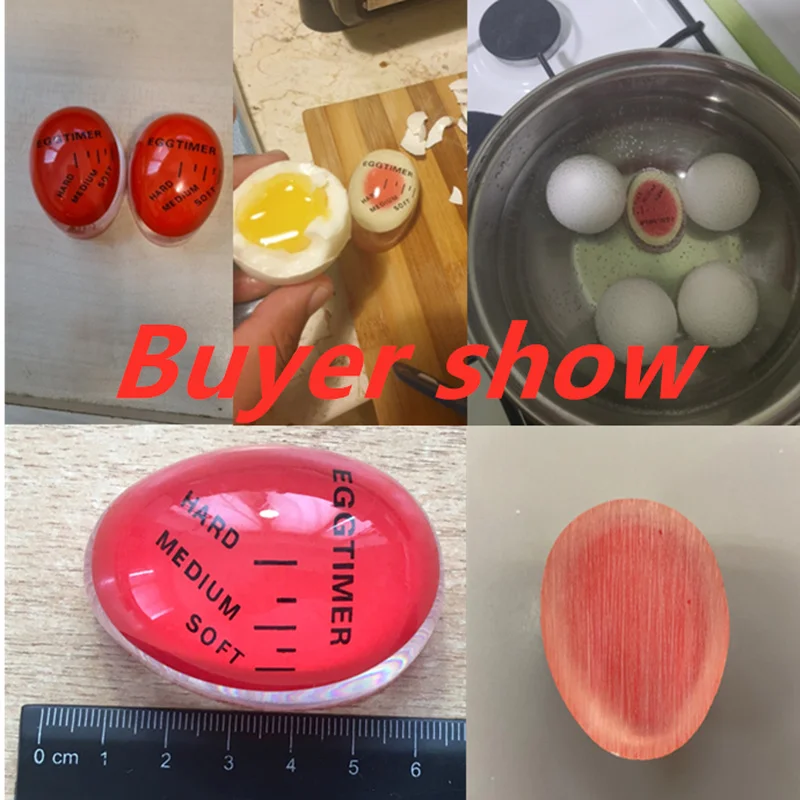Особенности: Термочувствительный. Градуированные весы показывают, когда яйца мягкие, средние или твердые, воспринимая тепло вместо времени. Мягкие вареные яйца точно такие же, как они вам нравятся. Твердые вареные яйца больше не готовятся, поэтому они имеют идеально окрашенные желтки и гладкую текстуру. Таймер Яйца Можно охладить на прилавке. Не погружайте таймер Яйца в холодную воду. Спецификация: Тип: таймеры Особенность: экологически чистый Материал: смола Тип таймера: таймеры с циферблатом Диаметр: 56 мм * 40 мм Цвет: re