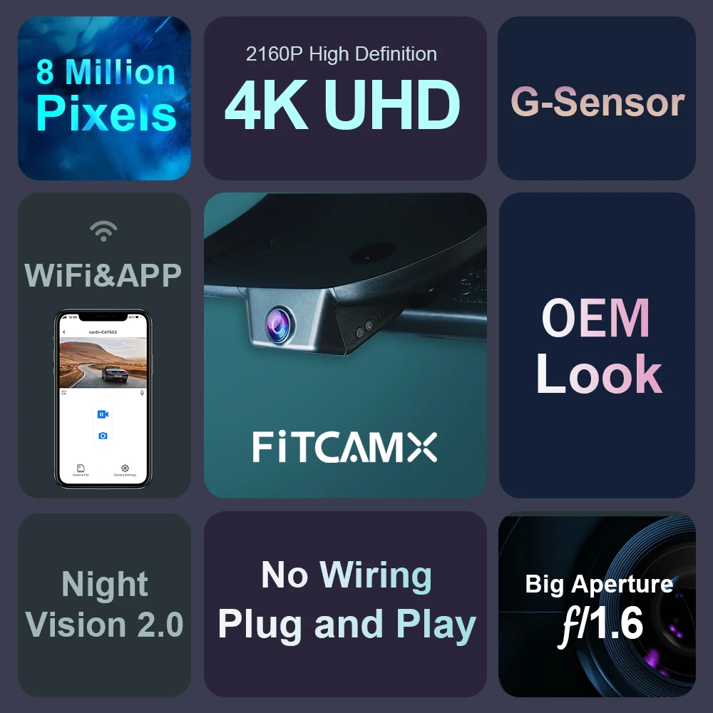 Автомобильный видеорегистратор для Ford Mustang 2019 2020 2021 2022, видеорегистратор FITCAMX 4K для Mustang, беспроводной Автомобильный видеорегистратор для левого руля, Plug and Play