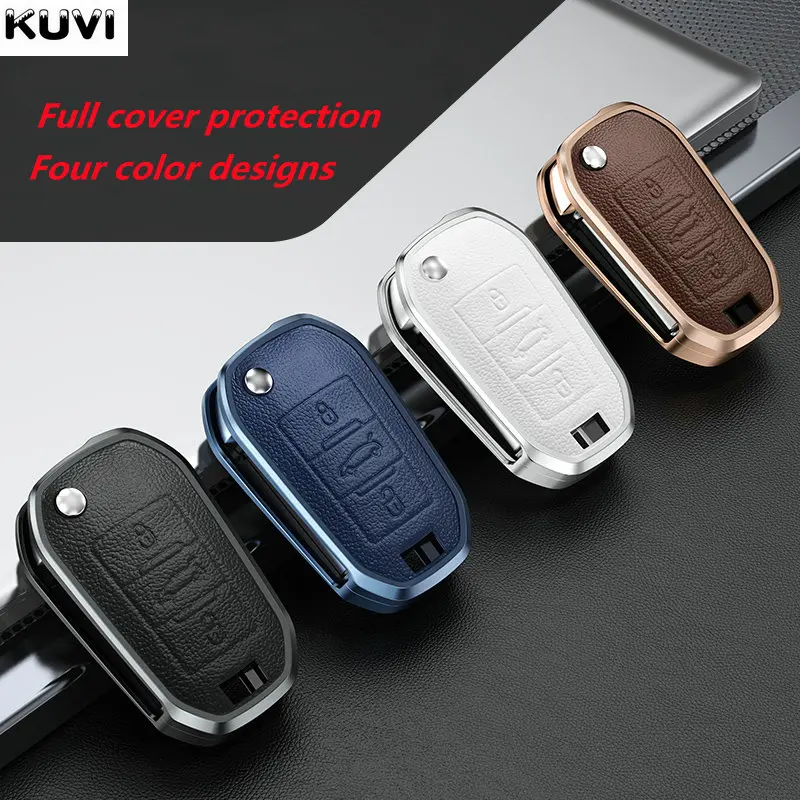 Чехол для автомобильного ключа с дистанционным управлением из сплава и кожи, чехол для Peugeot 208, 2008, 308, 3008, 408, 508, 107, 301, Citroen C4, CACTUS, C5, DS4, DS5