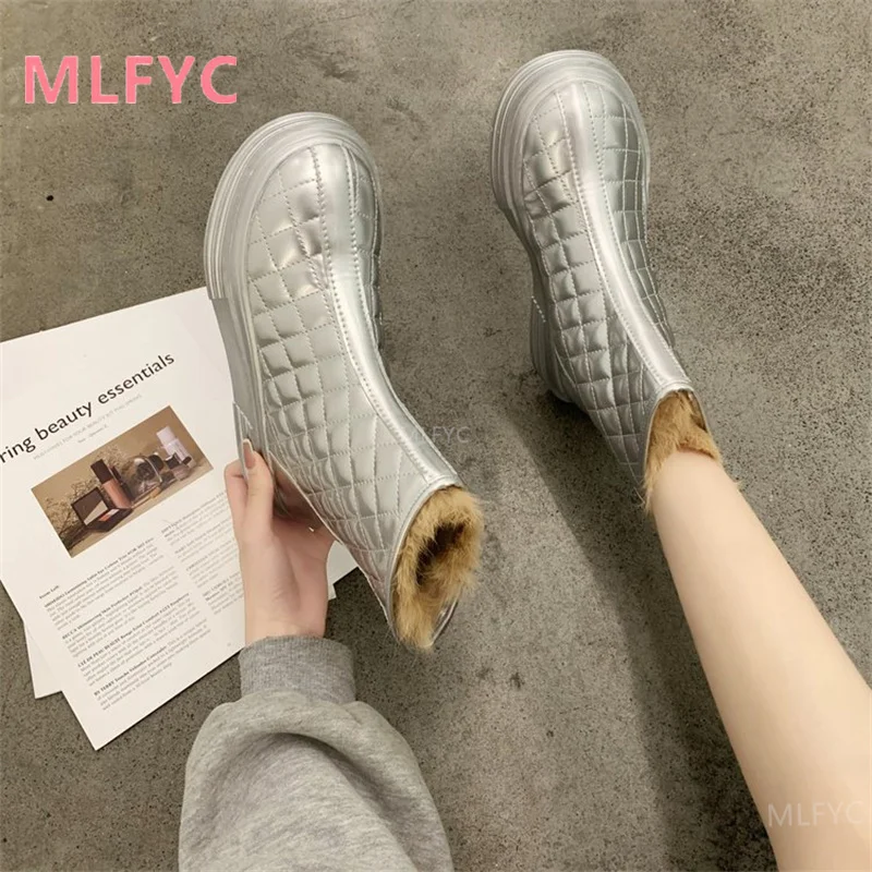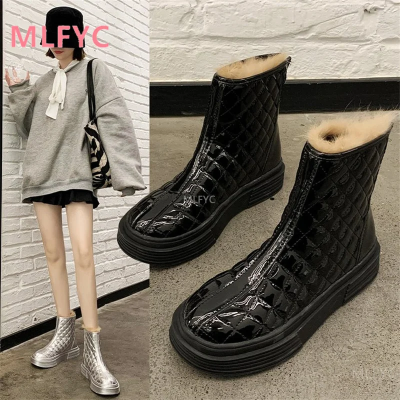 Женские зимние ботинки, новинка 2021 года, зимняя стильная обувь на толстой подошве с бархатной подкладкой из хлопка, универсальные повседневные женские ботинки средней длины из хлопка