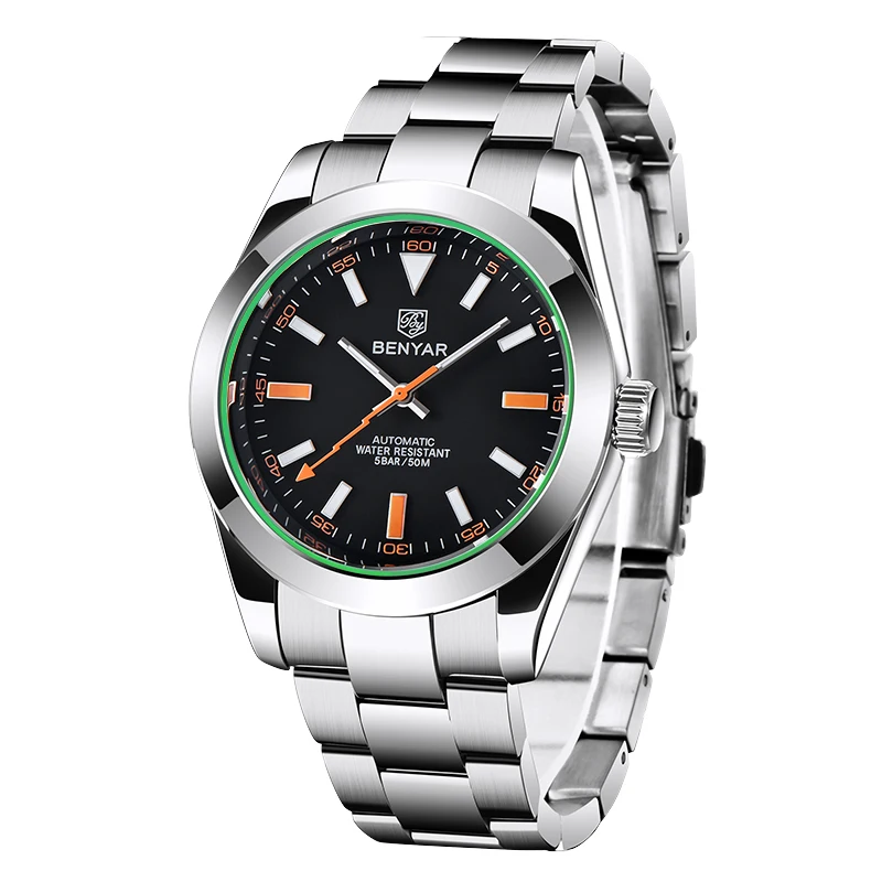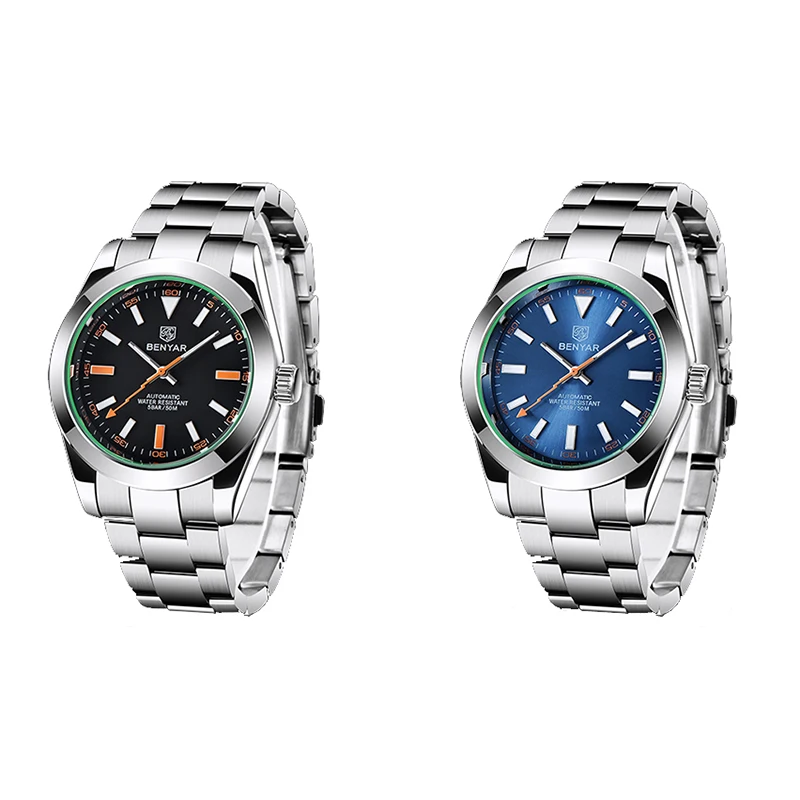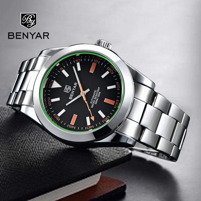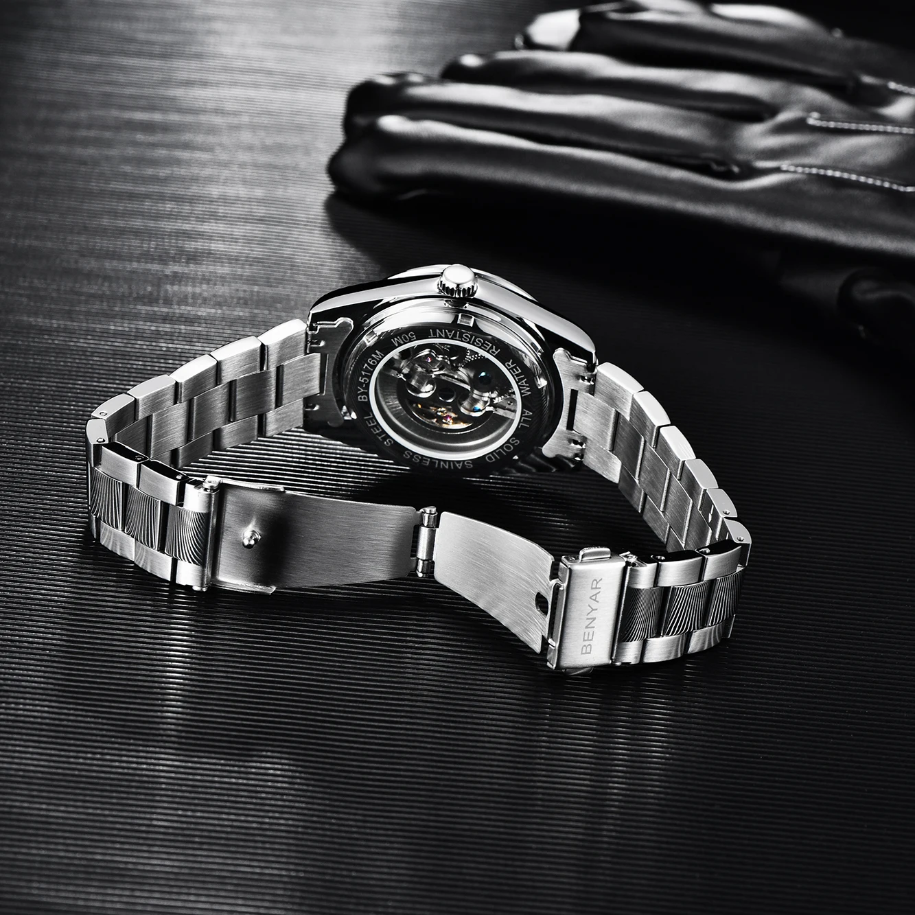 BENYAR автоматические механические часы мужские часы топ модного бренда на глубину до 50 м Водонепроницаемый нержавеющая сталь чехол бизнес стиль высокое качество класса люкс