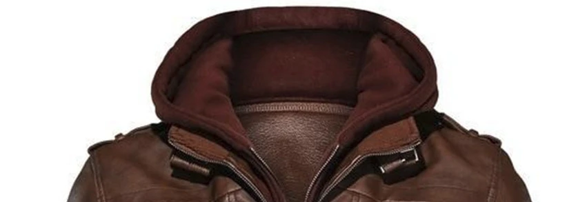 Куртка мужская мотоциклетная кожаная со съемной шапкой, повседневна...