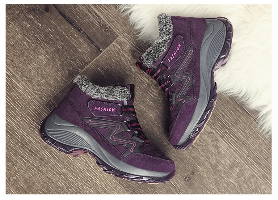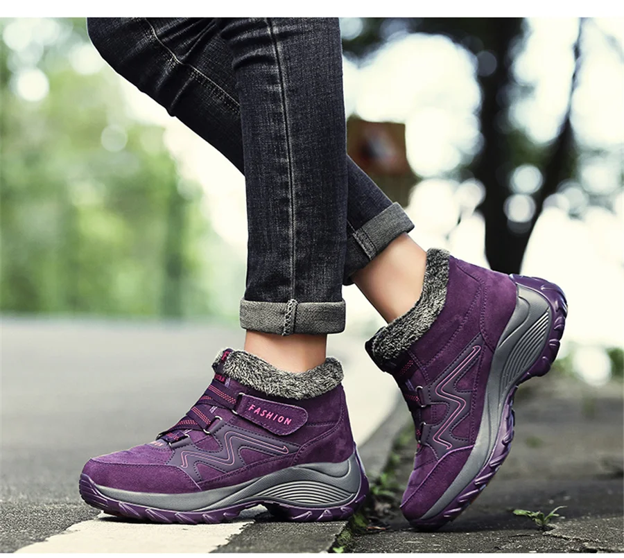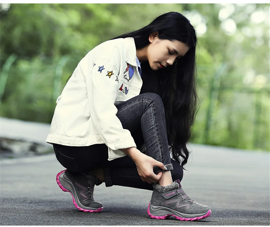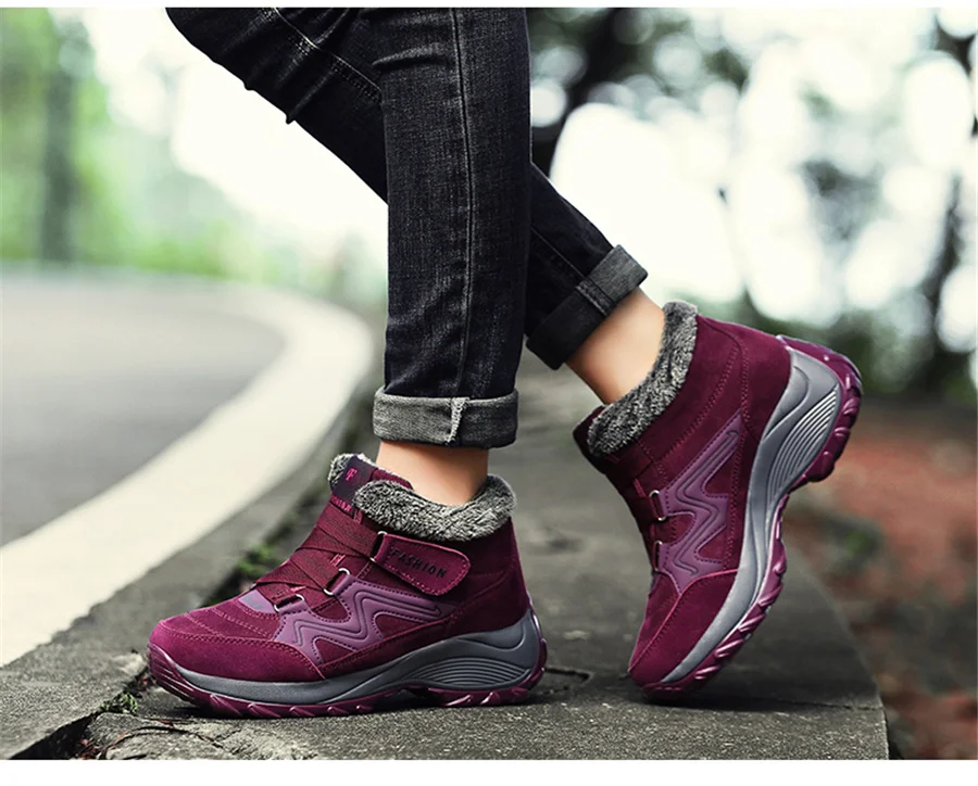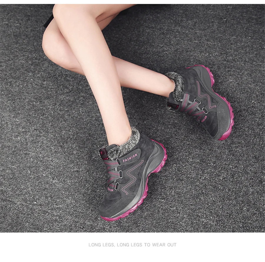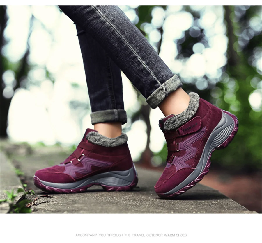 Зимние женские теплые ботинки; Женские Теплые ботильоны на высокой танкетке; Водонепроницаемые кроссовки на резиновом меху; Походная обувь; Zapatos De Mujer