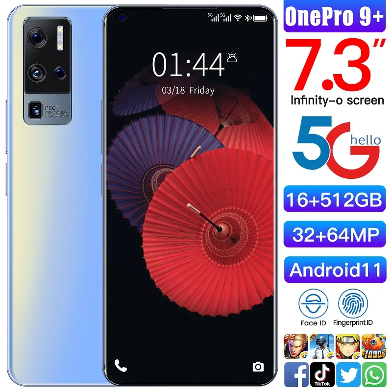 Название: OnePro 9 + смартфонов глобальная версия 16 ГБ + 512 ГБ 6800 мАч 7,3 дюймов HD Камера мобильного телефона 1440*3200 5G Android 11,0 мобильные телефоны