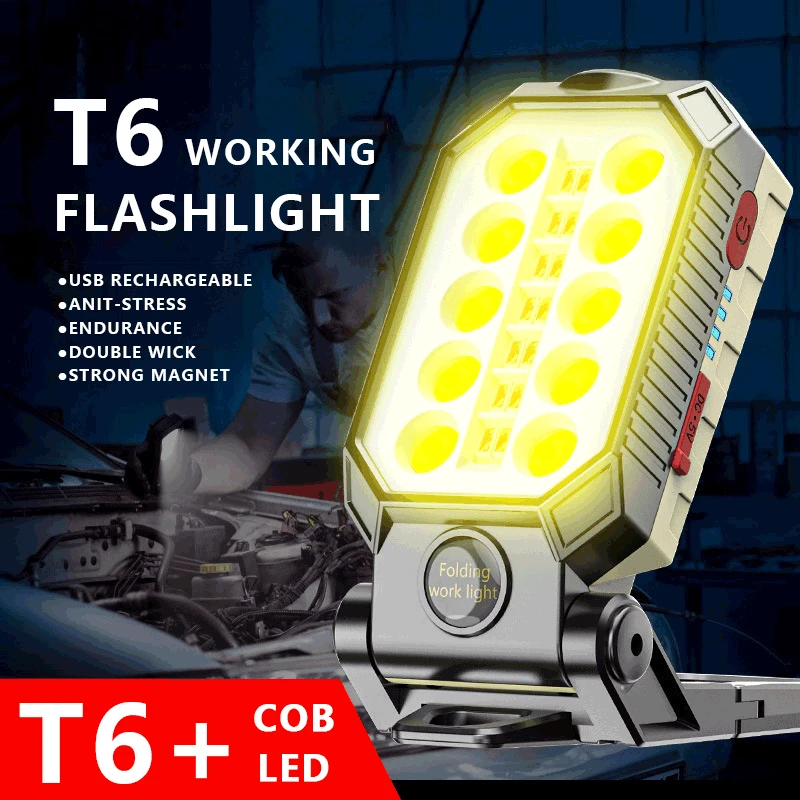 Светодиодный COB USB Перезаряжаемый Магнитный рабочий светильник, портативный фонарик, светильник фонарь для кемпинга, магнитный дизайн с дисплеем мощности