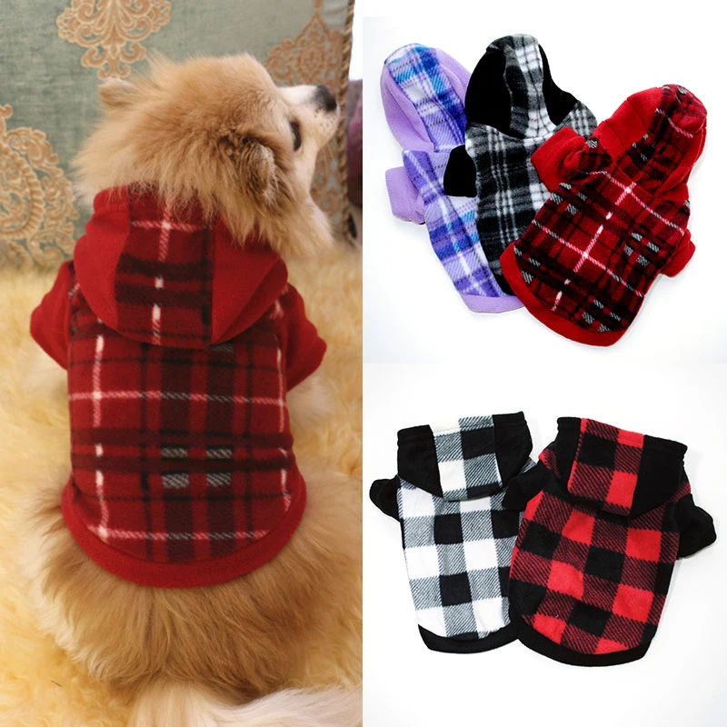 Теплая Флисовая клетчатая Одежда для собак на осень и зиму, Спортивная толстовка с капюшоном для домашних животных, толстовки для собак, свитер для мопса чихуахуа, костюм для маленьких собак