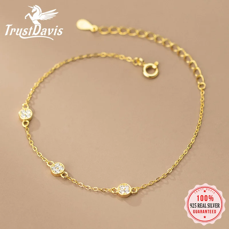 TrustDavis Настоящее серебро 925 пробы модное милое CZ цепь кольцо ...