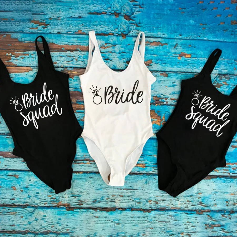 Женский слитный купальник отряд "невеста", бикини, купальный костюм, летний Боди с открытой спиной, женский купальник