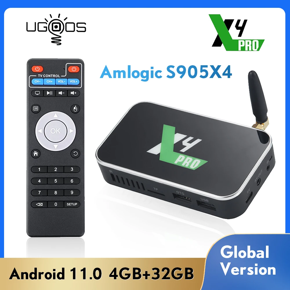 UGOOS X4 PRO 4GB 32GB Smart TV Box Android 11.0 Amlogic S905x4 Поддержка AV1 4K Media Player TV Resevers 1000m BT4.0 Установите верхние коробки