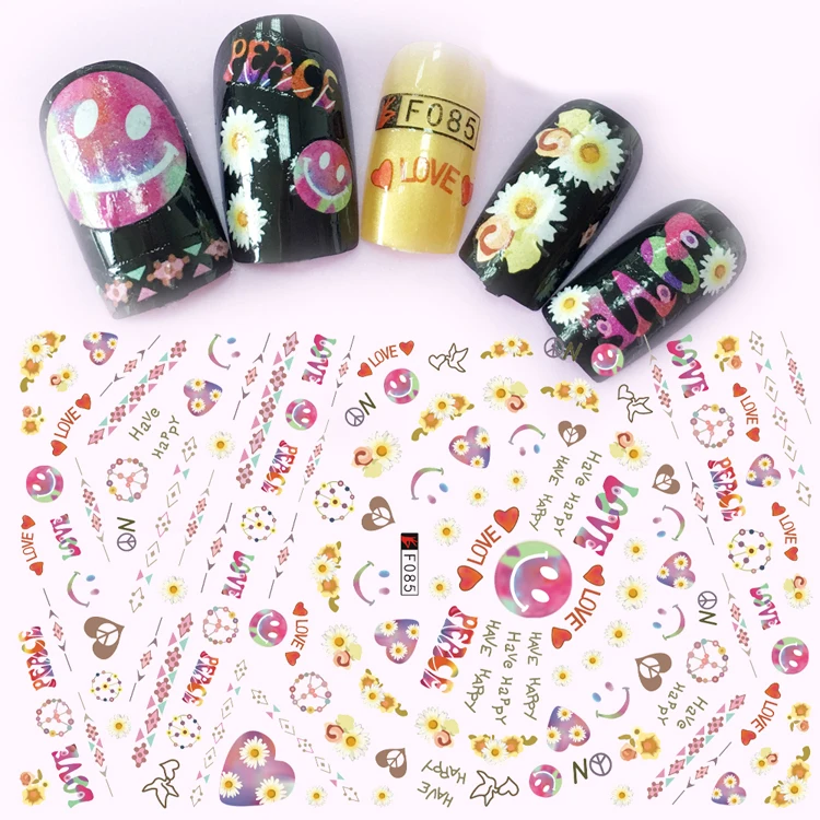 1 лист, милый цветок, лист жука, наклейки для ногтей, самоклеющиеся...