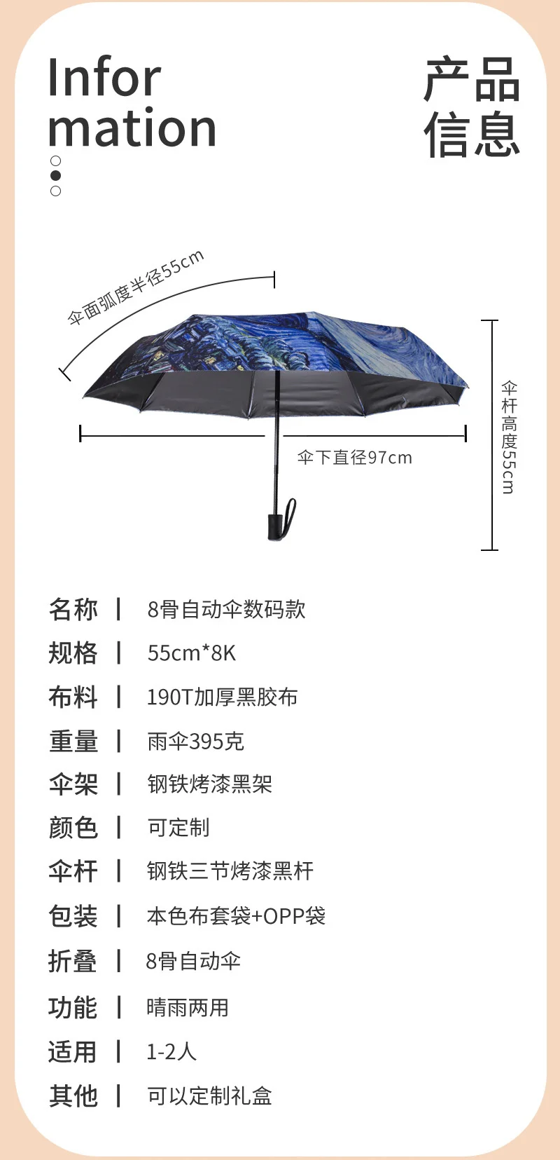 Складной зонт, женский ветрозащитный зонт, Ван Гог, масляная живопись, зонтик от дождя для женщин и мужчин, качественные зонтики, автоматические зонтики