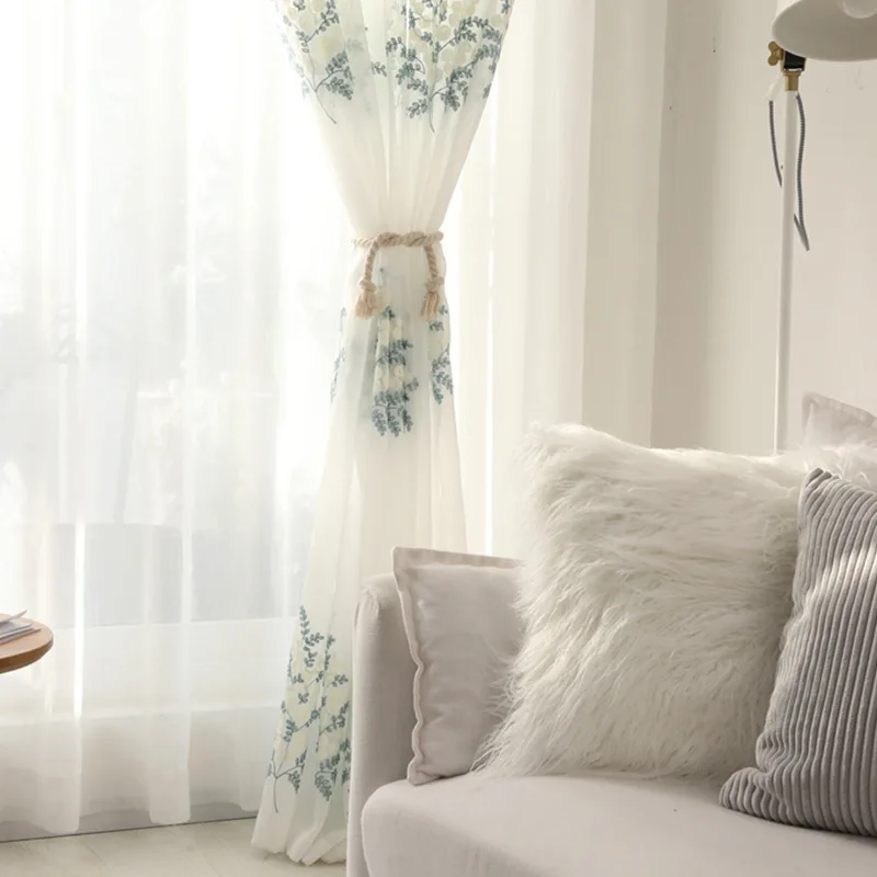 Шторы с вышивкой в скандинавском стиле, прозрачные Занавески для го...