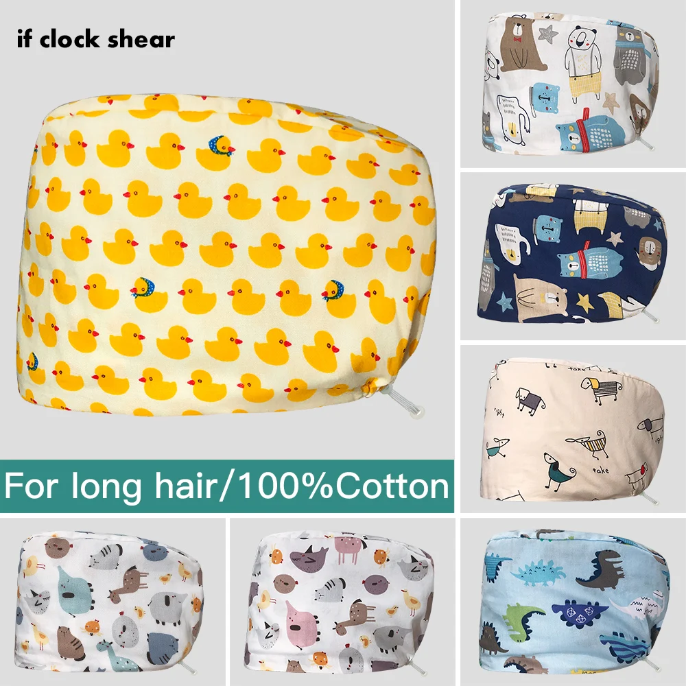 Шапка медсестринская с принтом животных, мягкая впитывающая пот пол...
