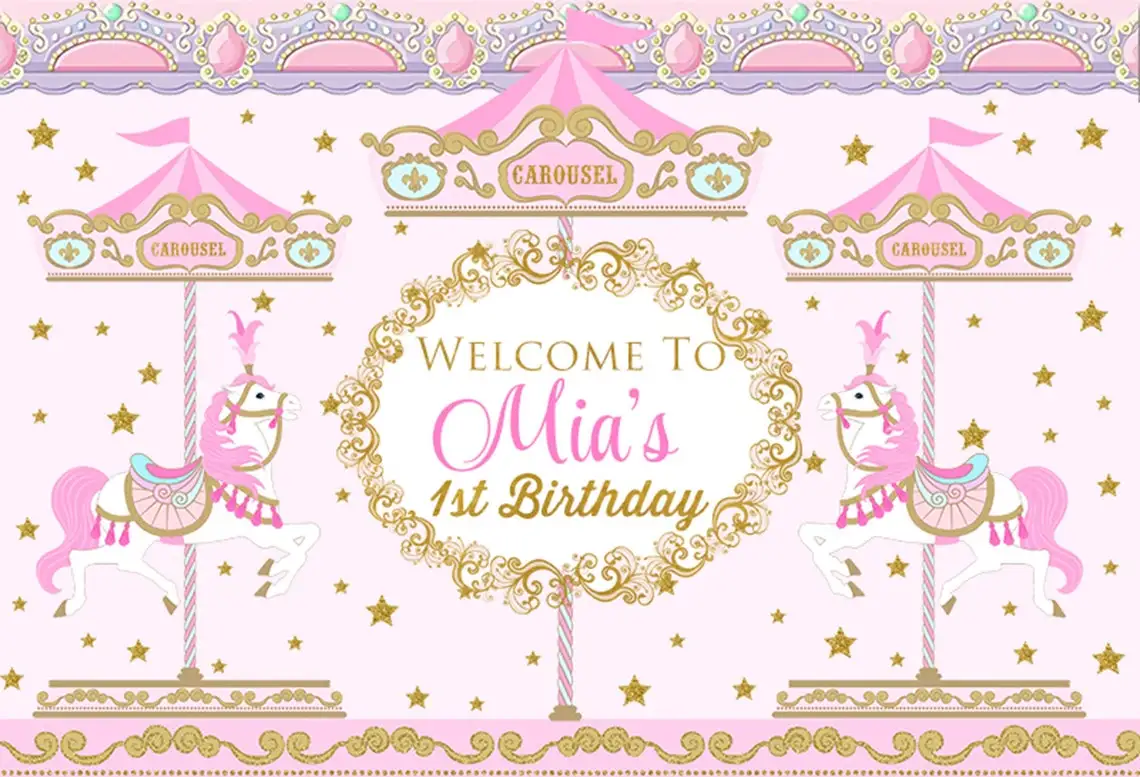 Фон для фотосъемки с блестками карусель полосы Лошадь Детский День Рождения Декор фотографические фоны для фотостудии на заказ
