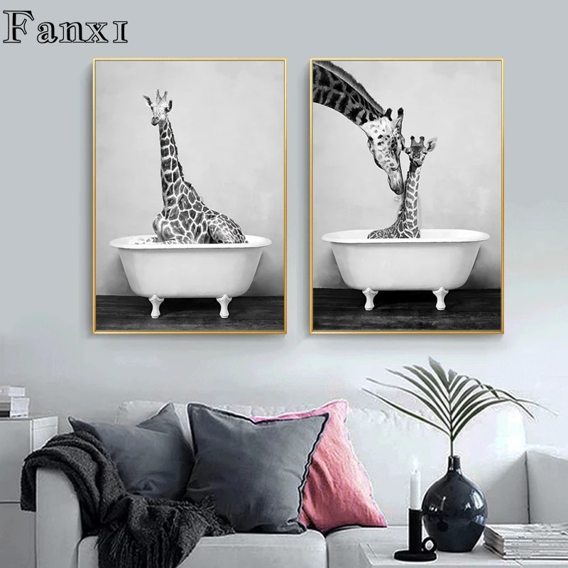 Настенные плакаты с изображением черных и белых животных, рисунок с...