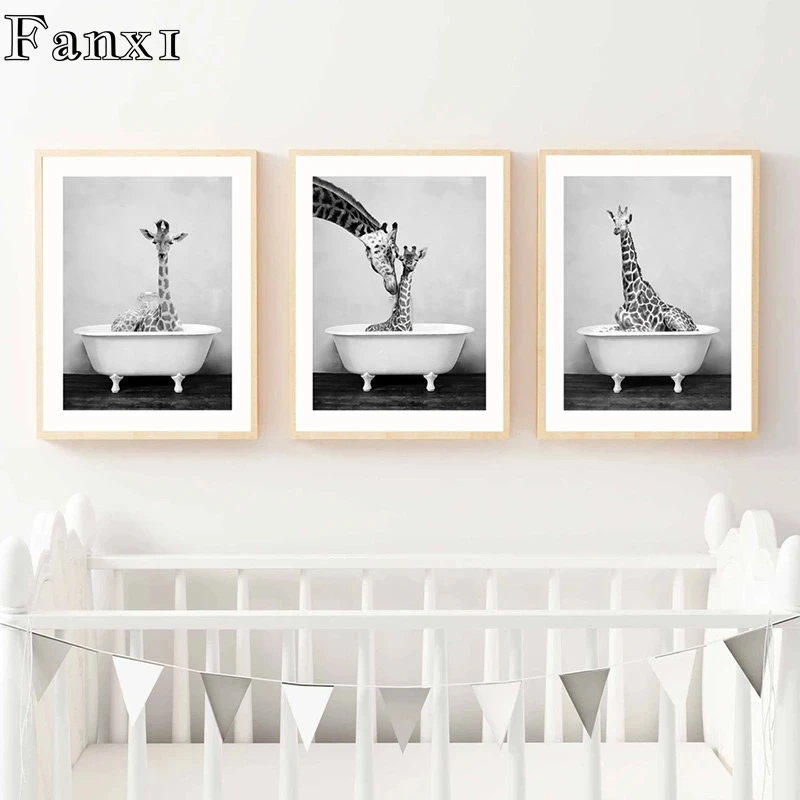 Детский постер с животными панда Жираф детская Настенная картина в ...