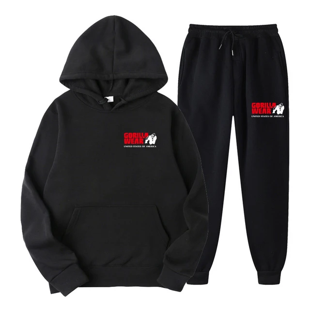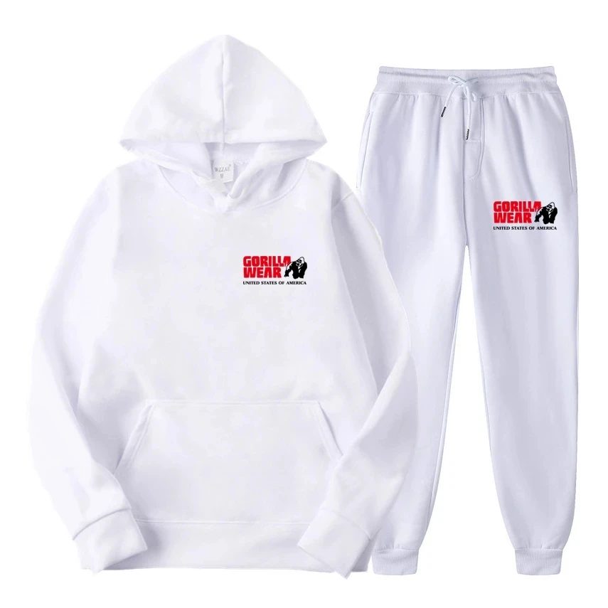 Мужской спортивный костюм из двух предметов, Повседневная Толстовка с капюшоном и штаны, спортивный костюм для спортзала на осень и зиму, 2021