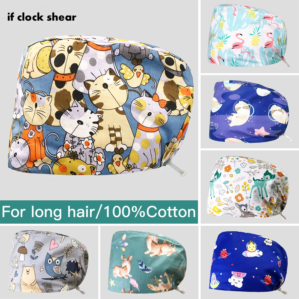 Шапка медсестринская с принтом животных, мягкая впитывающая пот пол...