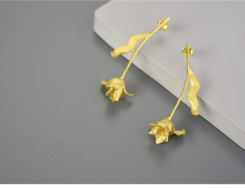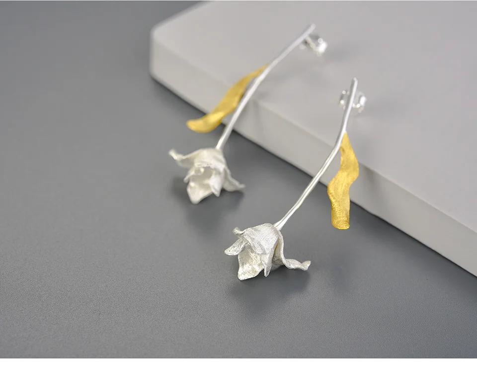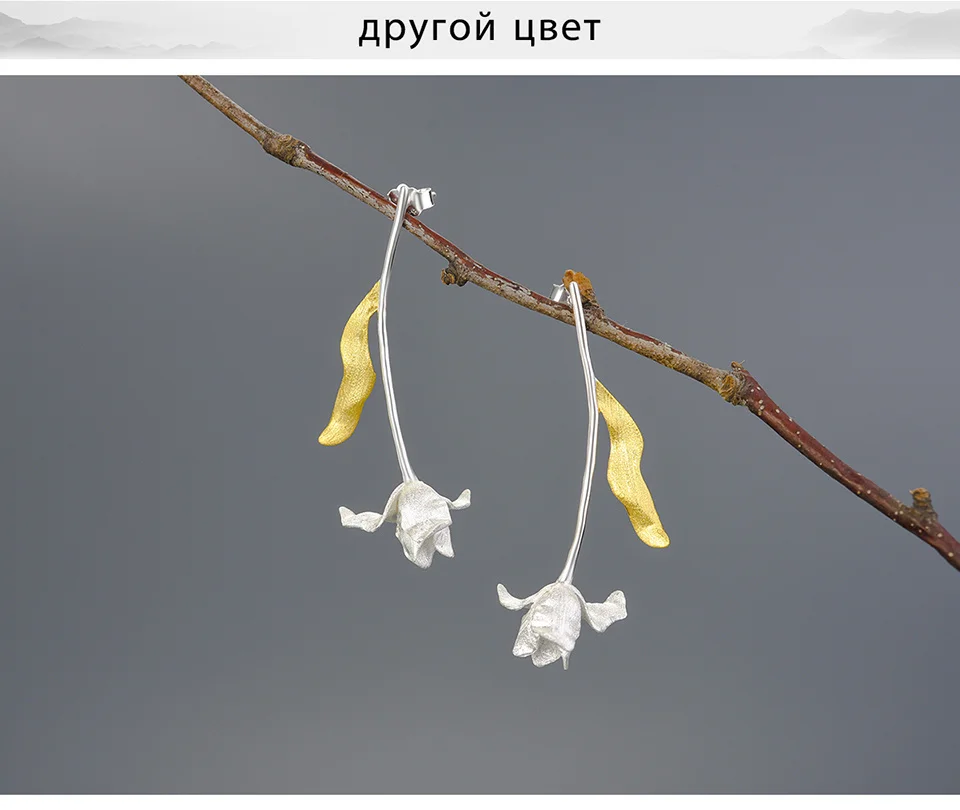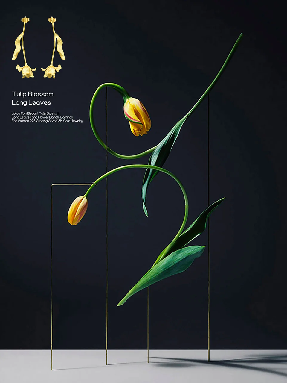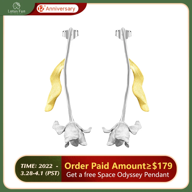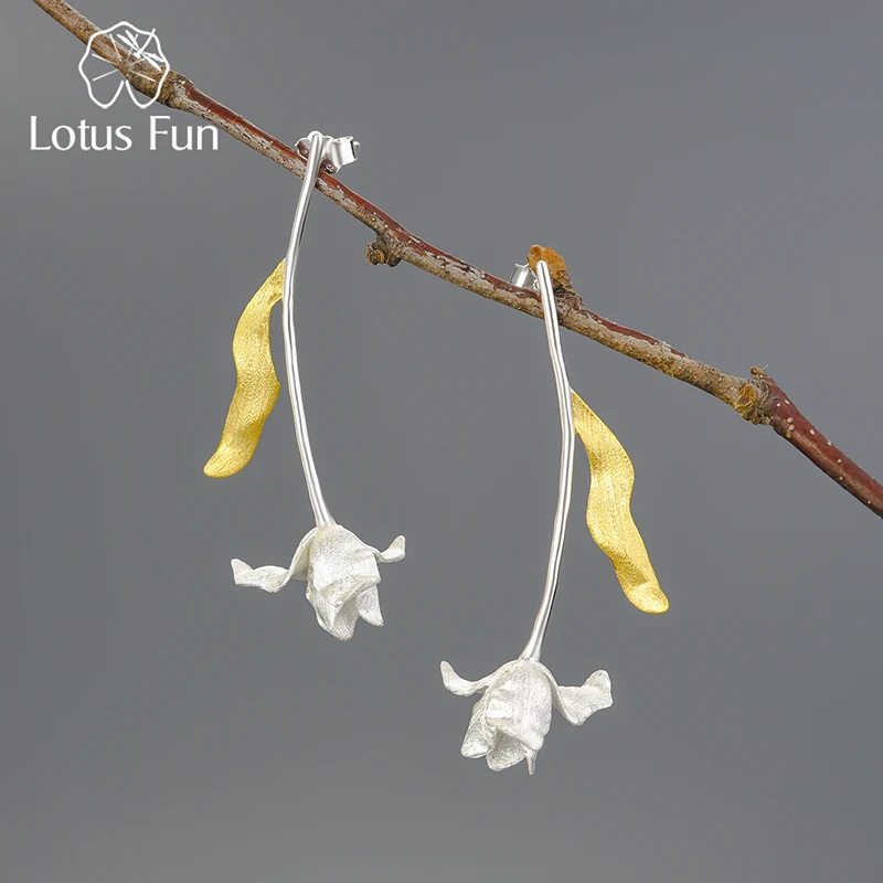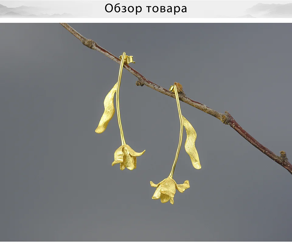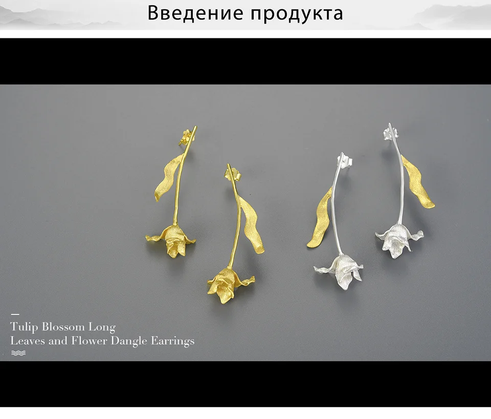 Женские длинные серьги тюльпан Lotus Fun, элегантные серьги-подвески из серебра 925 пробы с листьями и цветами, ювелирное изделие из 18-каратного золота, 2022