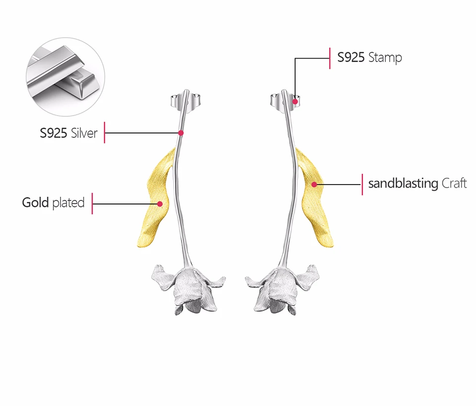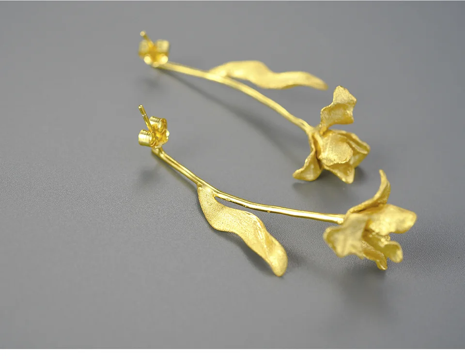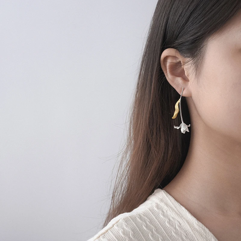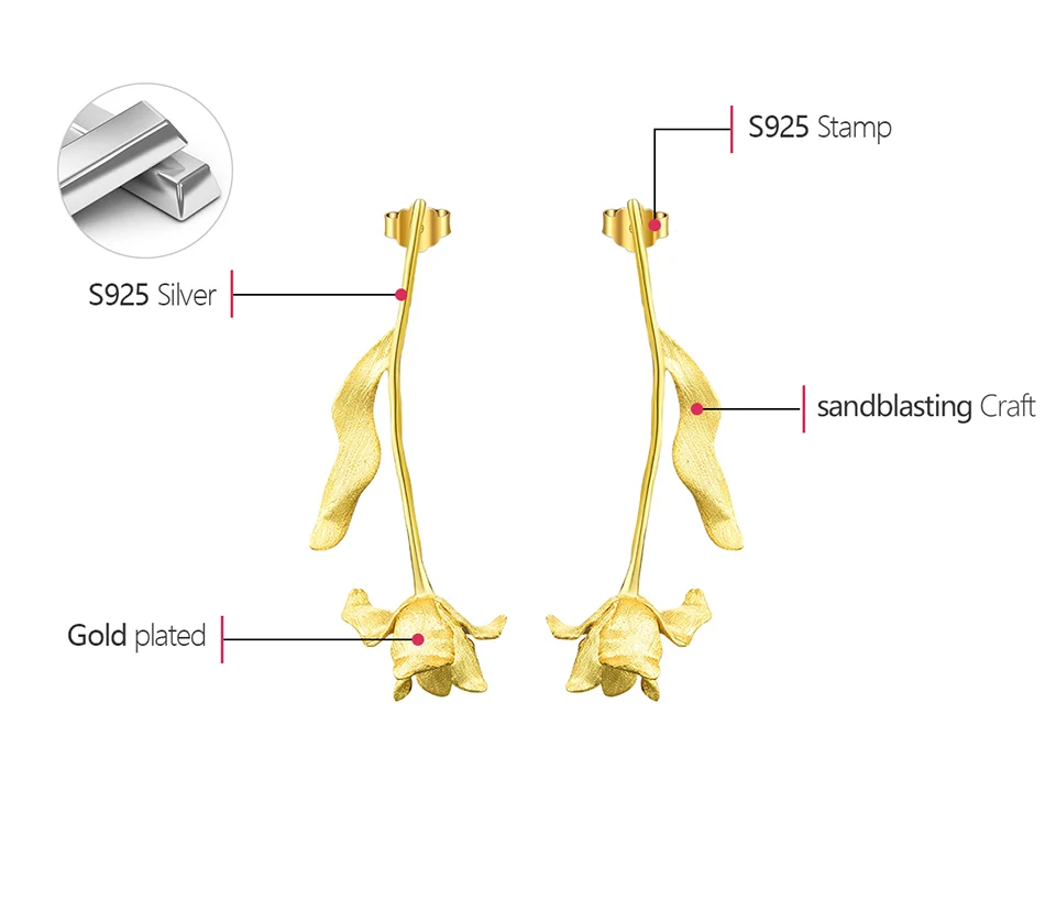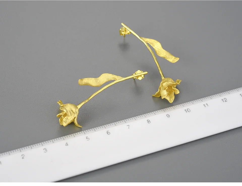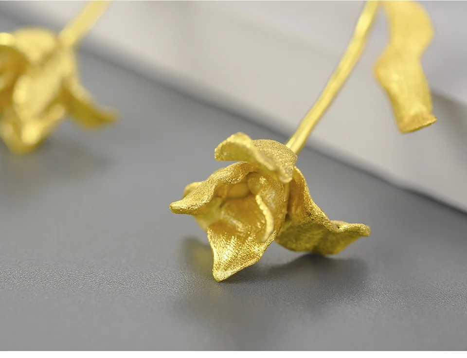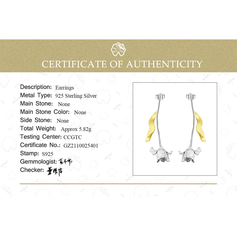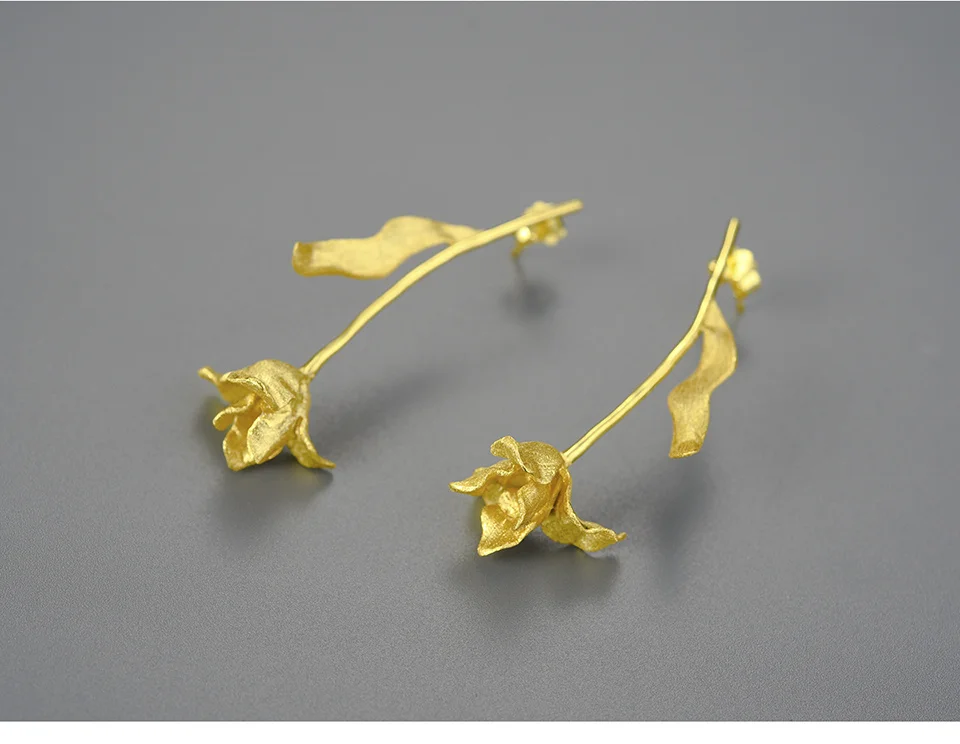 Женские длинные серьги тюльпан Lotus Fun, элегантные серьги-подвески из серебра 925 пробы с листьями и цветами, ювелирное изделие из 18-каратного золота, 2022