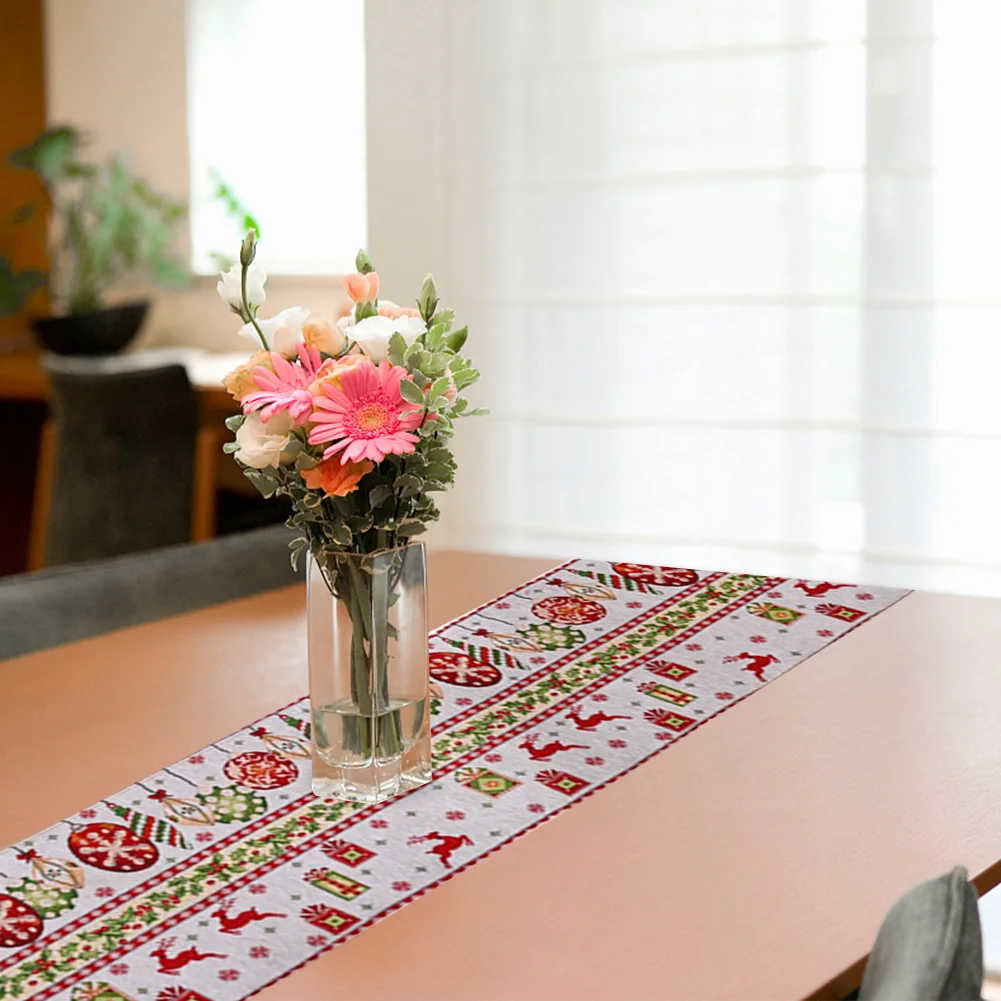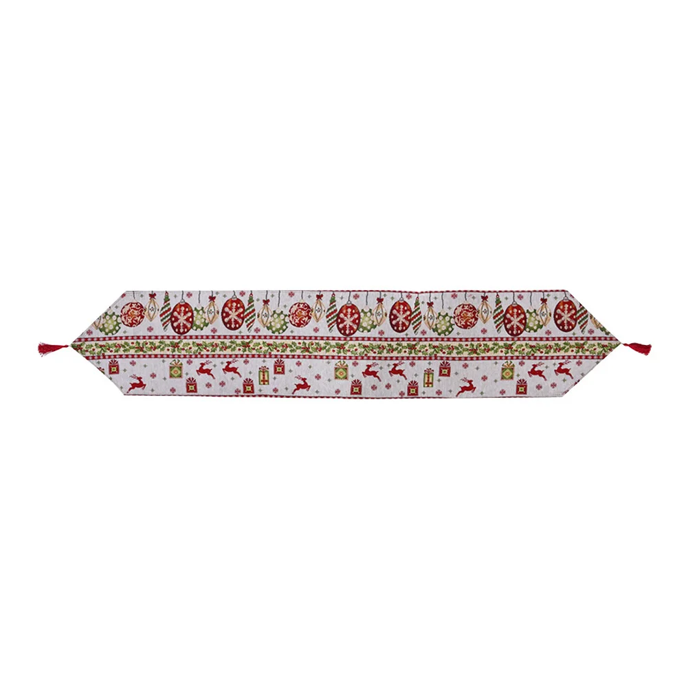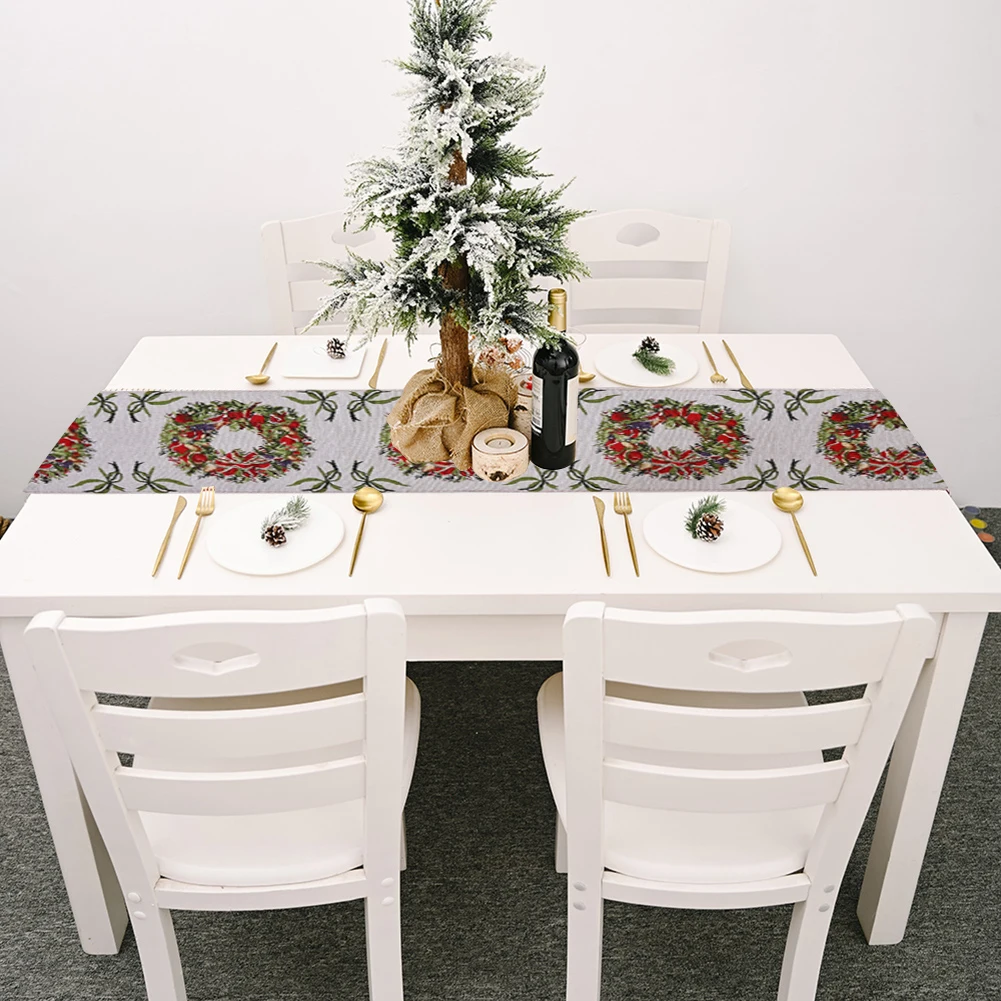 180 см Новогодняя настольная дорожка с принтом, венок Санты, елки, ...