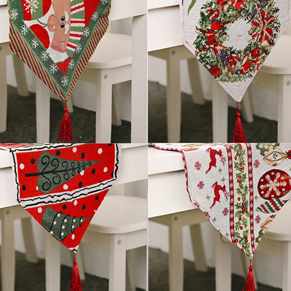 Рождество, Новый Год, настольный бегун, флаг, вязаный мультяшный узор с кисточкой, пылезащитный чехол, кофе, чай, стол, украшения, товары для вечеринки, аксессуары