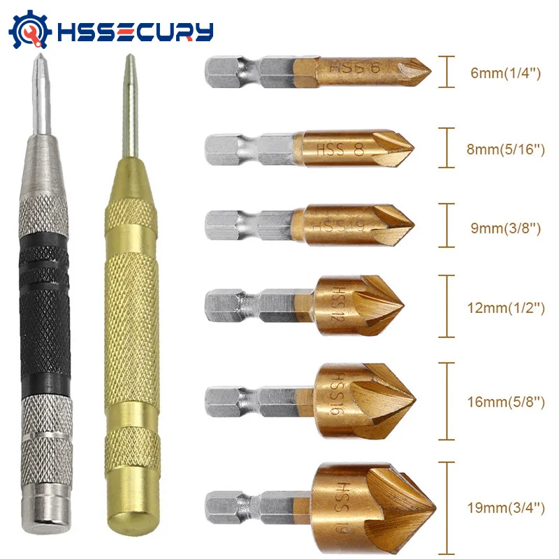 1. Идеально подходит для деревянных досок, ДВП, ДСП, фанеры, пластика, алюминиевых досок, печатных плат, DIY, дома и общего строительства/инженерного использования и многого другого.2. Эти сверла для раковины со счетчиком флейты обрабатываются из быстрорежущих сталей и доступны в 6 различных размерах диаметра.3. Отлично подходит для погружения отверстий на 90 градусов в дерево и мягкие металлы потайные винты и фиксаторы, для острых и точных потайных, режущая кромка закалена и отточена для острых ощущений.4. Столешницы с шестигранным хвостовиком 1/4 ″ отлично подходят для быстрого сверления, они не скользят в буровых патронах.5. Без болтовни, пять-флейты разработаны с ошеломленными режущими зубами, aranged для обеспечения свободного потока чипов и быстрого бесконтактного свободного резания.6. Вы можете легко сделать глубокие столешницы, установив стоп глубины столешницы, чтобы позволить столешнице более глубоко сверлить на рабочей поверхности.