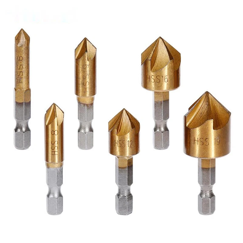 6 шт зенковки сверло набор 14 ''шестигранным хвостовиком HSS 5 Флей...