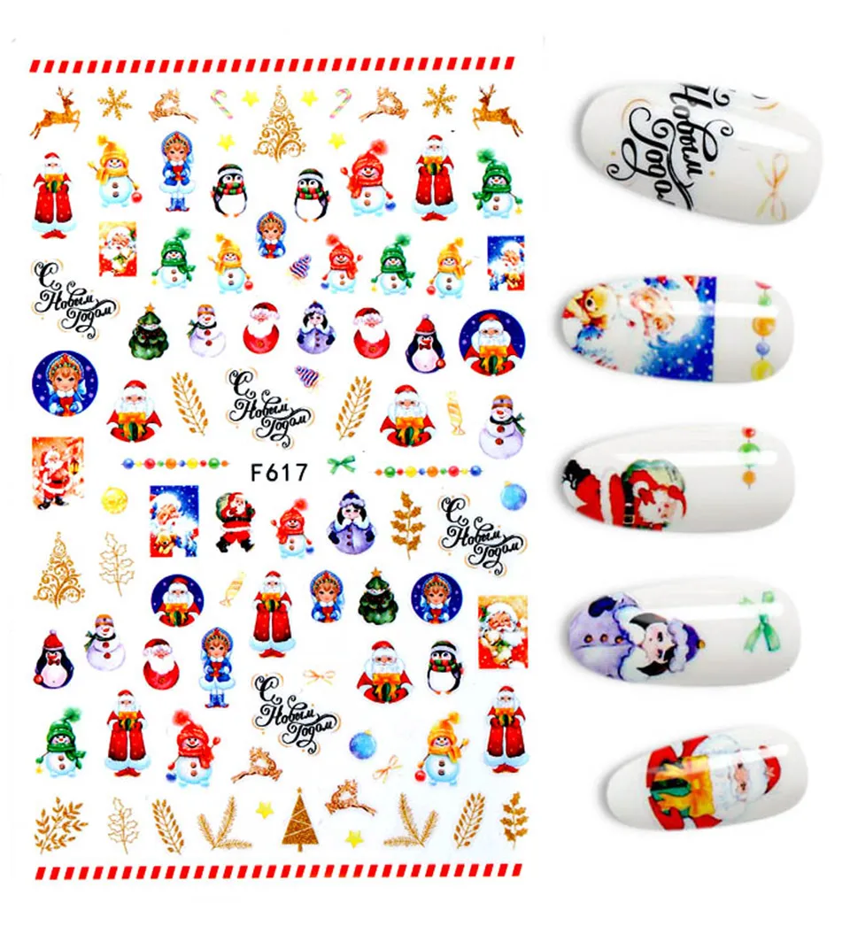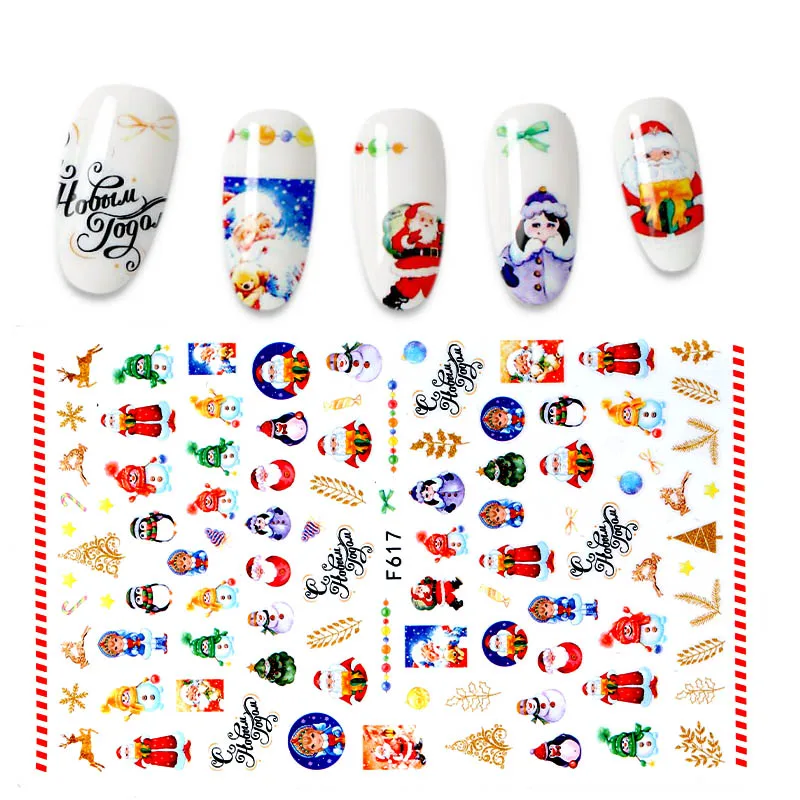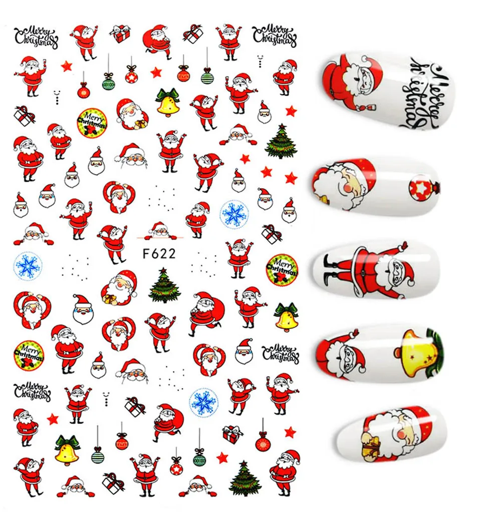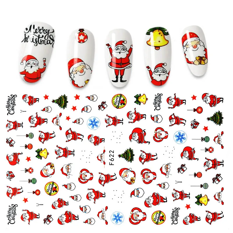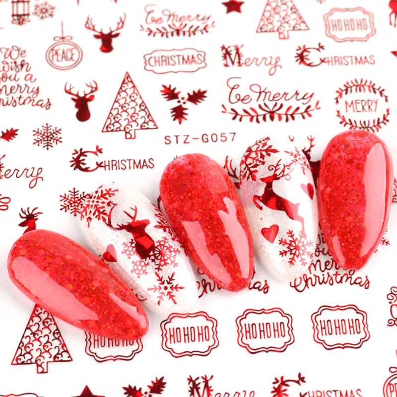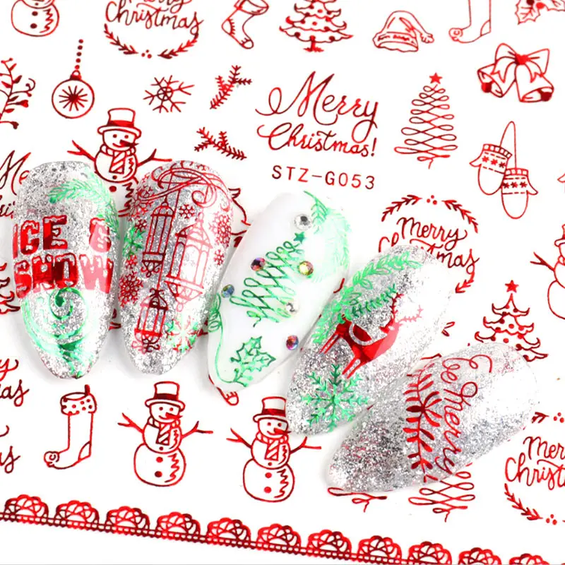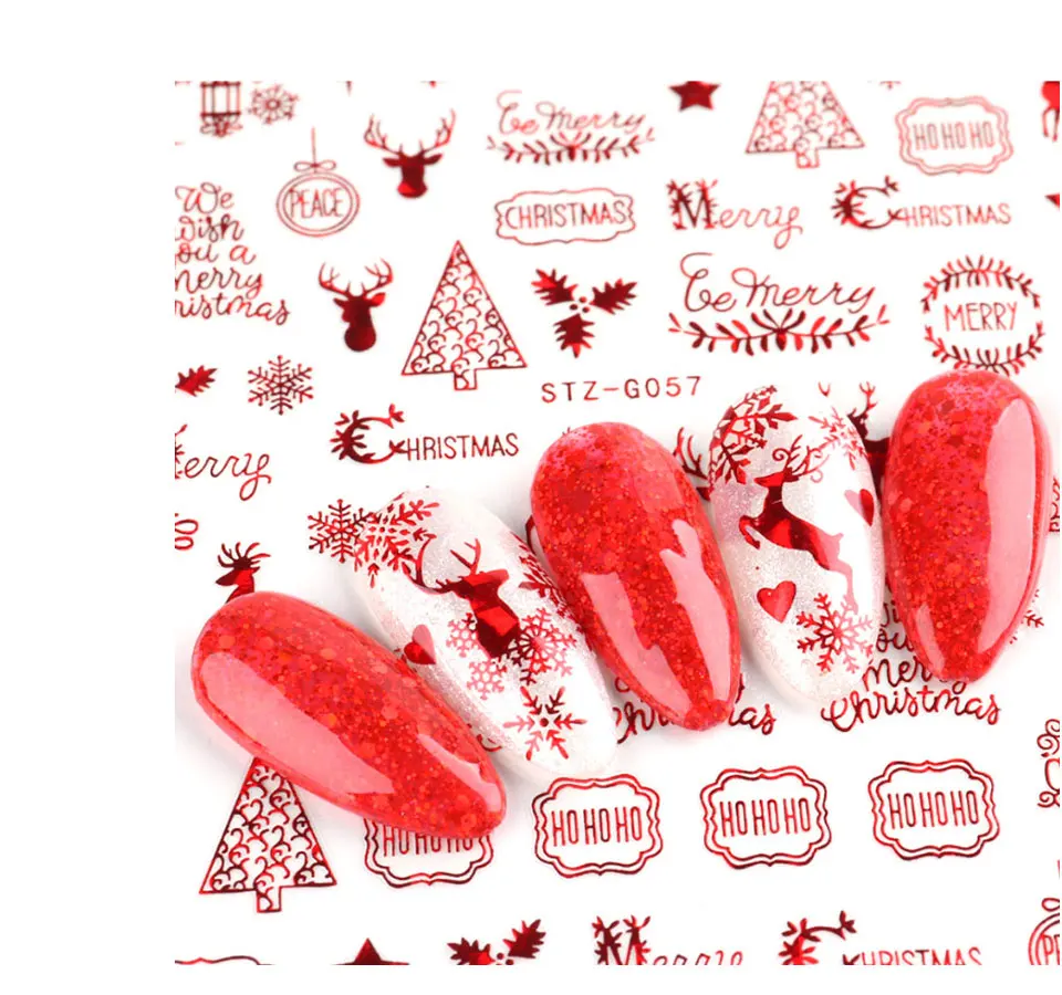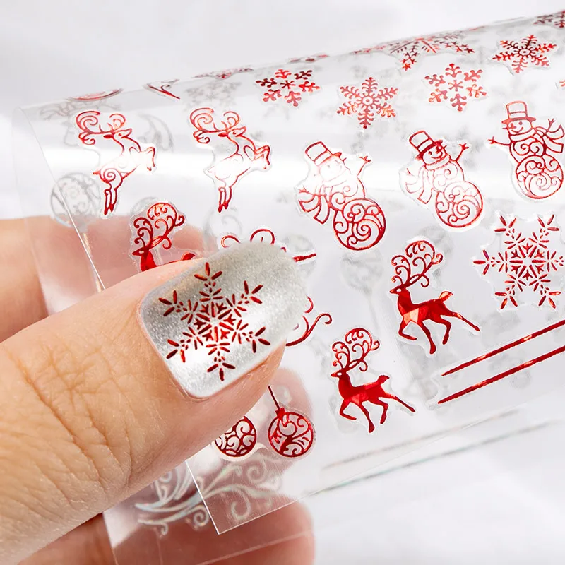 Голографический стиль, Санта-Клаус, снежинка, олень, украшение для ногтей, Рождественский дизайн, наклейки для ногтей
