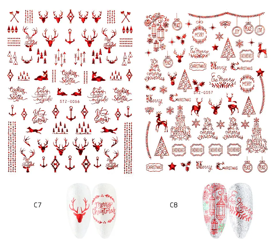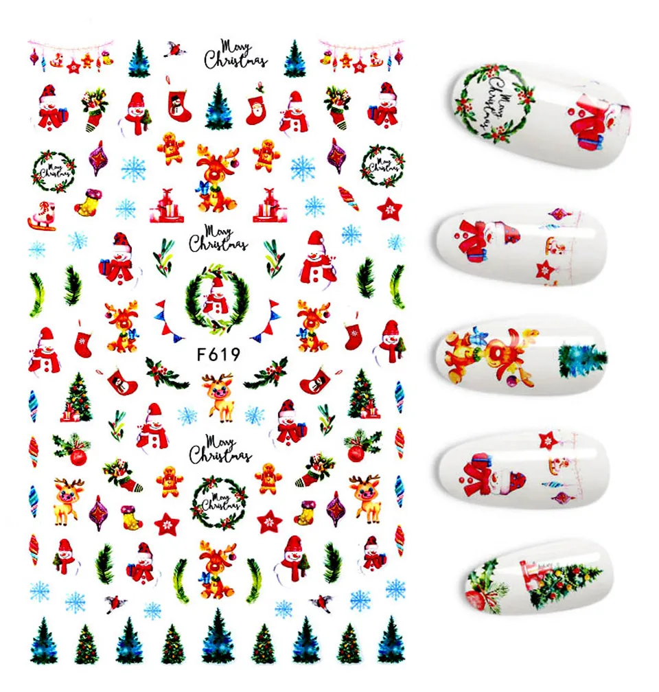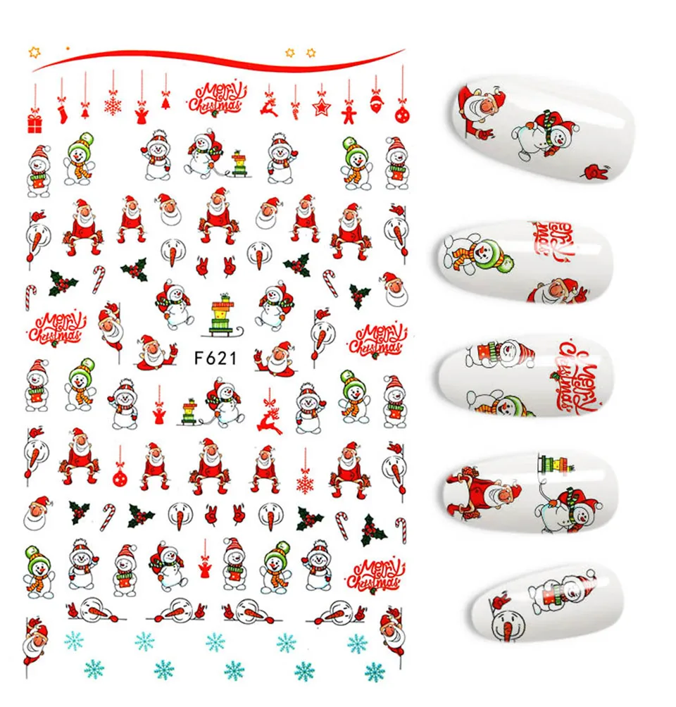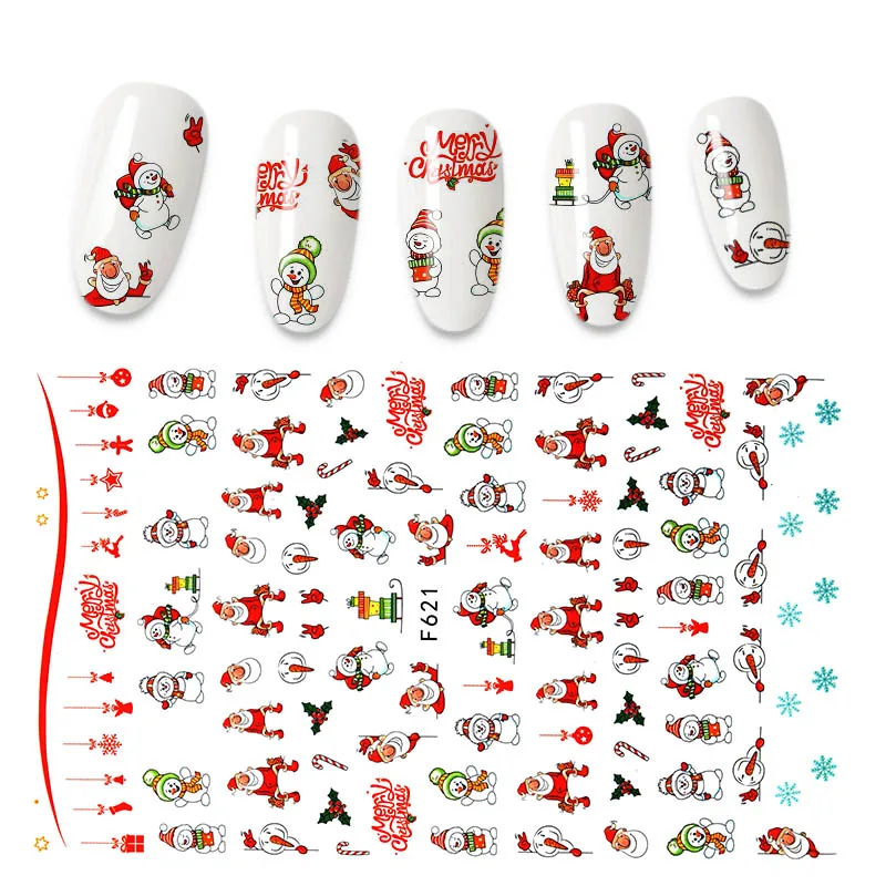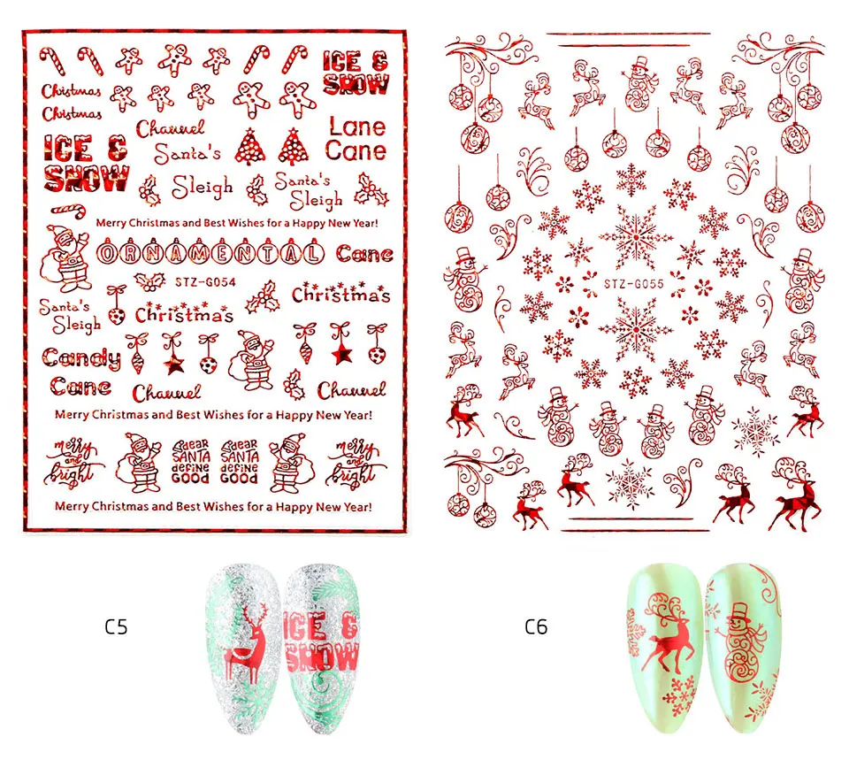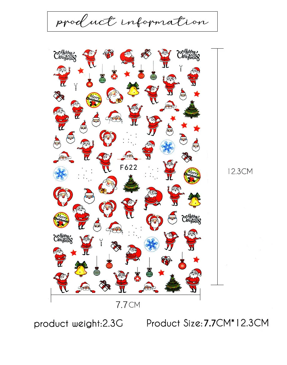 Голографический стиль, Санта-Клаус, снежинка, олень, украшение для ногтей, Рождественский дизайн, наклейки для ногтей