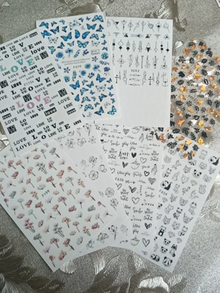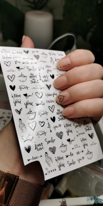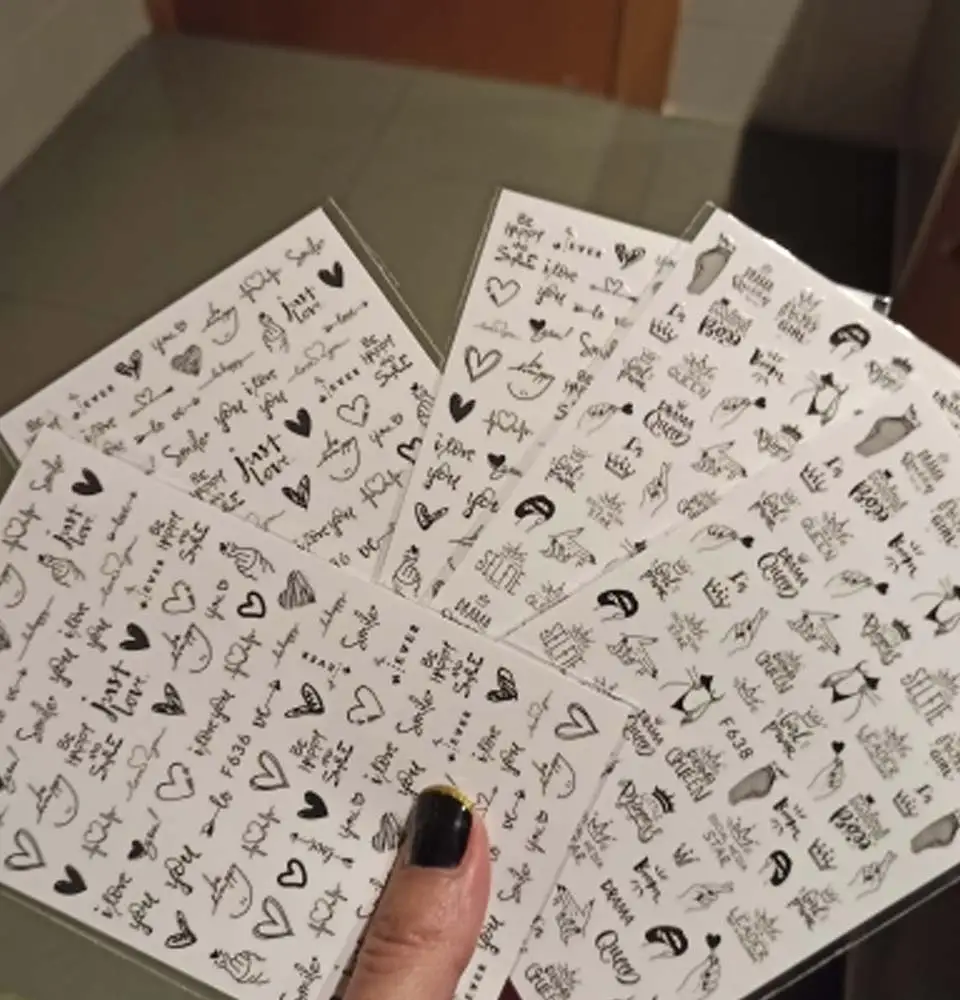 Наклейки 3D для ногтей с надписью на английском языке, наклейки с узором лица, наклейки-слайдеры, украшения для ногтевого дизайна на День святого Валентина, рождественские наклейки для ногтей