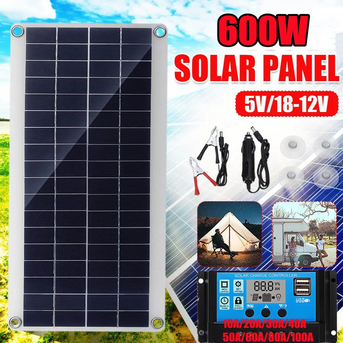 Панель Солнечная портативная, 600 Вт, 12 В, 10 А20 А30 А40 А50 А60 А100 А