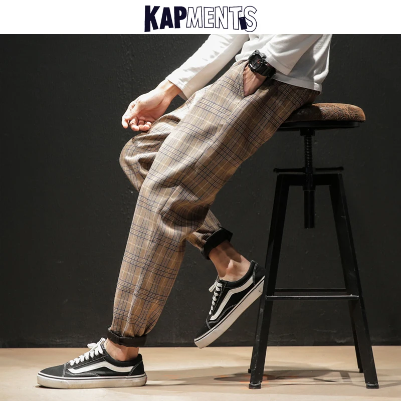 Мужские брюки-шаровары KAP, желтые, в клетку, повседневные, в стиле...